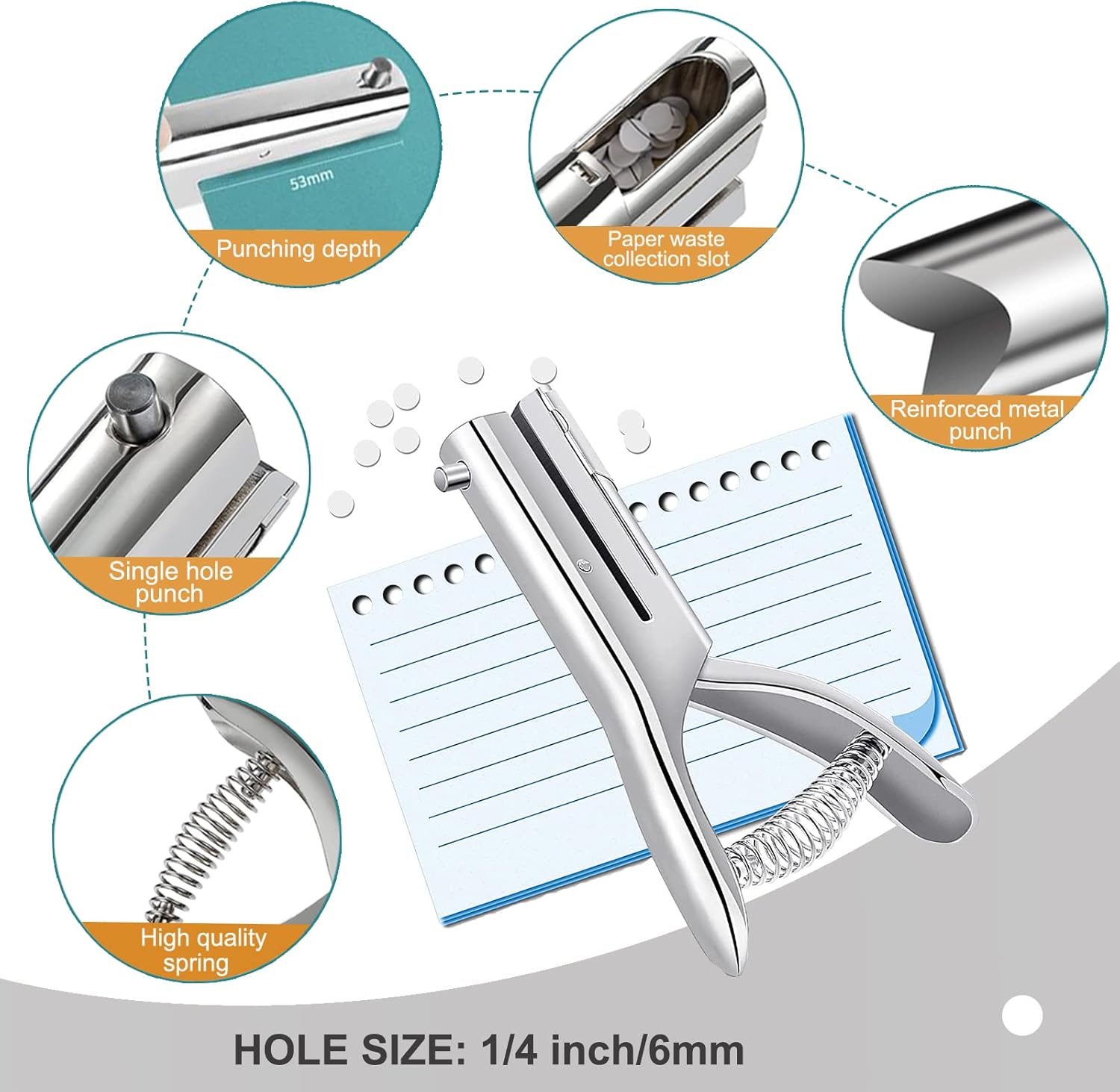 - Widely Applicable: Hole diameter: 6mm(1/4 inch). The One hole punch comes with functional and decorative purposes; Be suitable for paper, card, cardboard,business card,PVC bank card