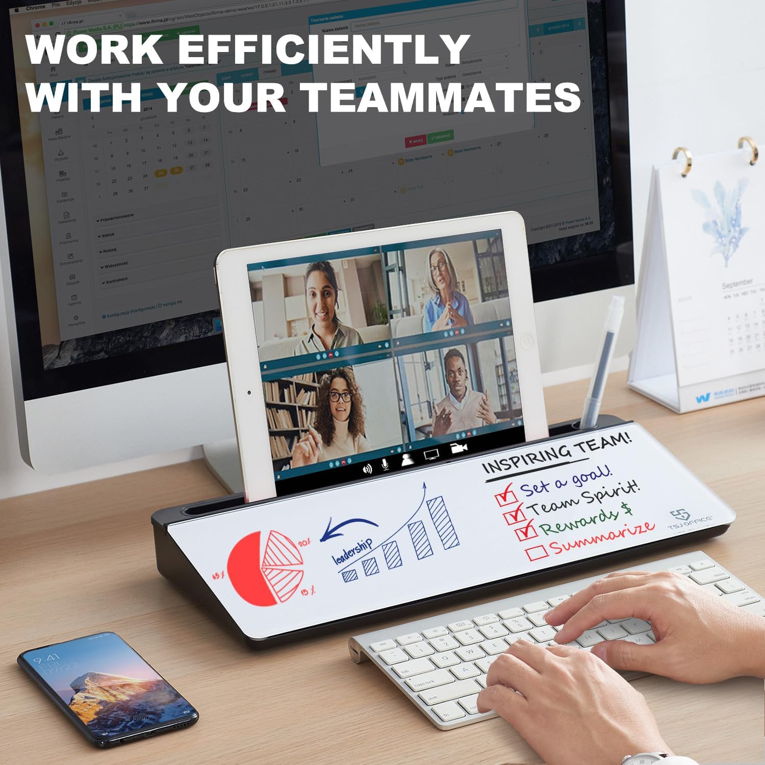 - SMOOTH WRITING & EASY TO WIPE: TSJ OFFICE mini desktop computer pad comes with a smooth and durable temple glass dry erase writing surface. This white board allows you to write and wipes clean with ease over and over. Our easel whiteboard always stays white and easy to read.