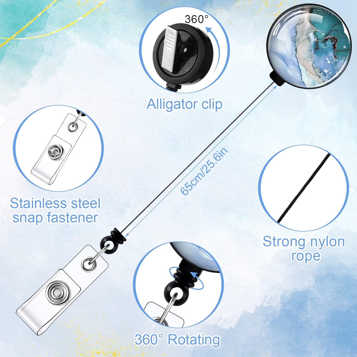 - Classic Marble Print: these retractable keychain holders have various marble prints on their surfaces, including black, white, pink, blue, gold, purple, and others, bright and colorful; They look very attractive and meaningful, and can match your clothes well, making you more stylish and elegant