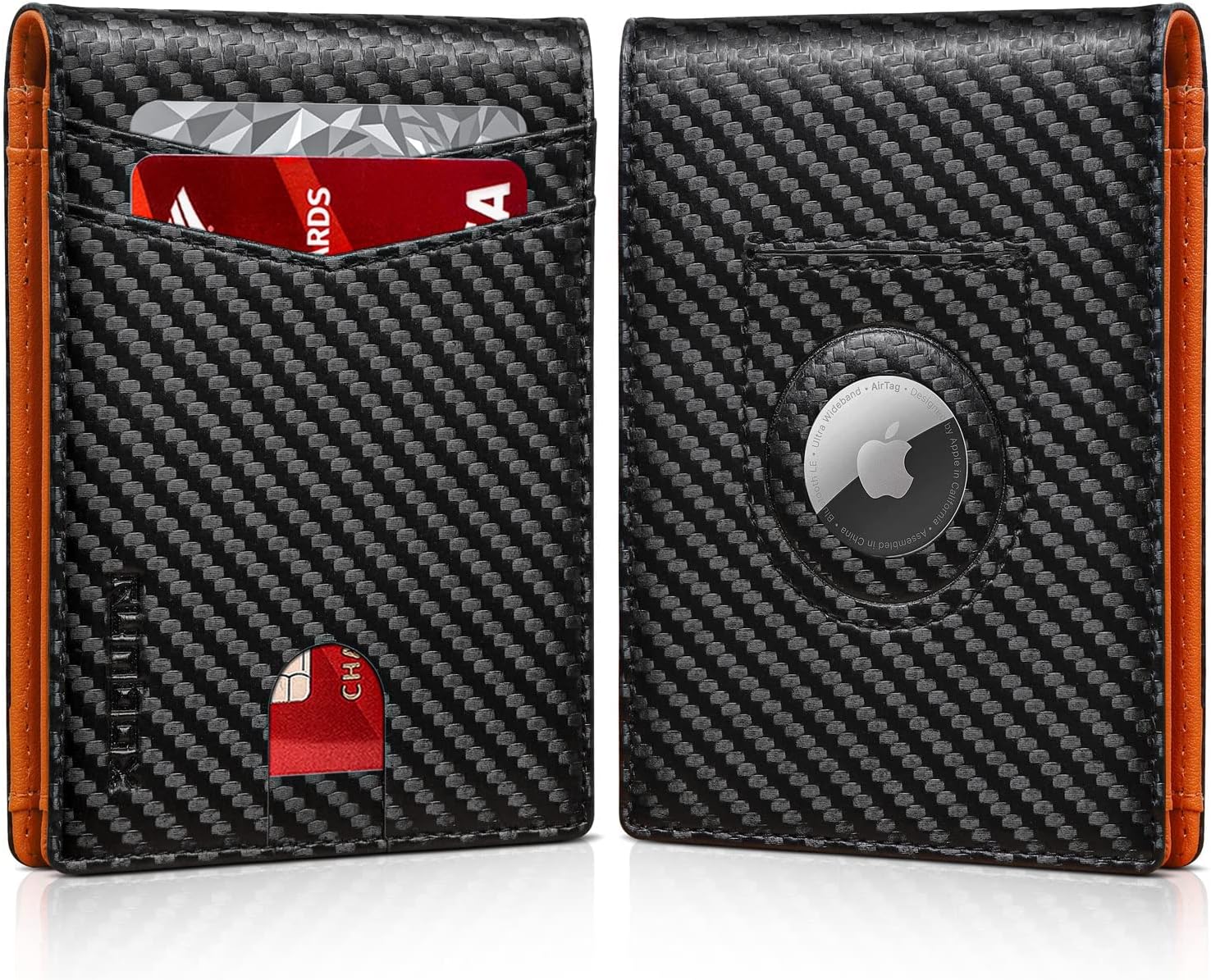 RUNBOX Airtag Wallet Men, Slim but Spacious Wallet for Men with Airtag Holder, Leather Credit Card Case Wallet, Bifold Wallet for Air Tag GPS Tracker, RFID Protected