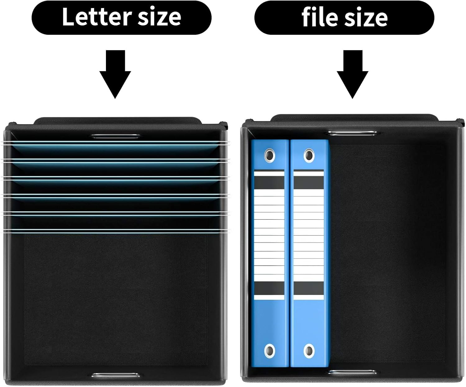 - Unique Functional Design - This file boxes both sides are equipped with practical PVP slide rails, which can not only prevent the two sides of the file storage box from loosening, but also facilitate the sliding of the file folder, which is very suitable for hanging file folders. The metal handles on both sides allow us to easily move the storage box, and the label slot on one side facilitates classification. Functional features and a beautiful design create the best filing organizer.