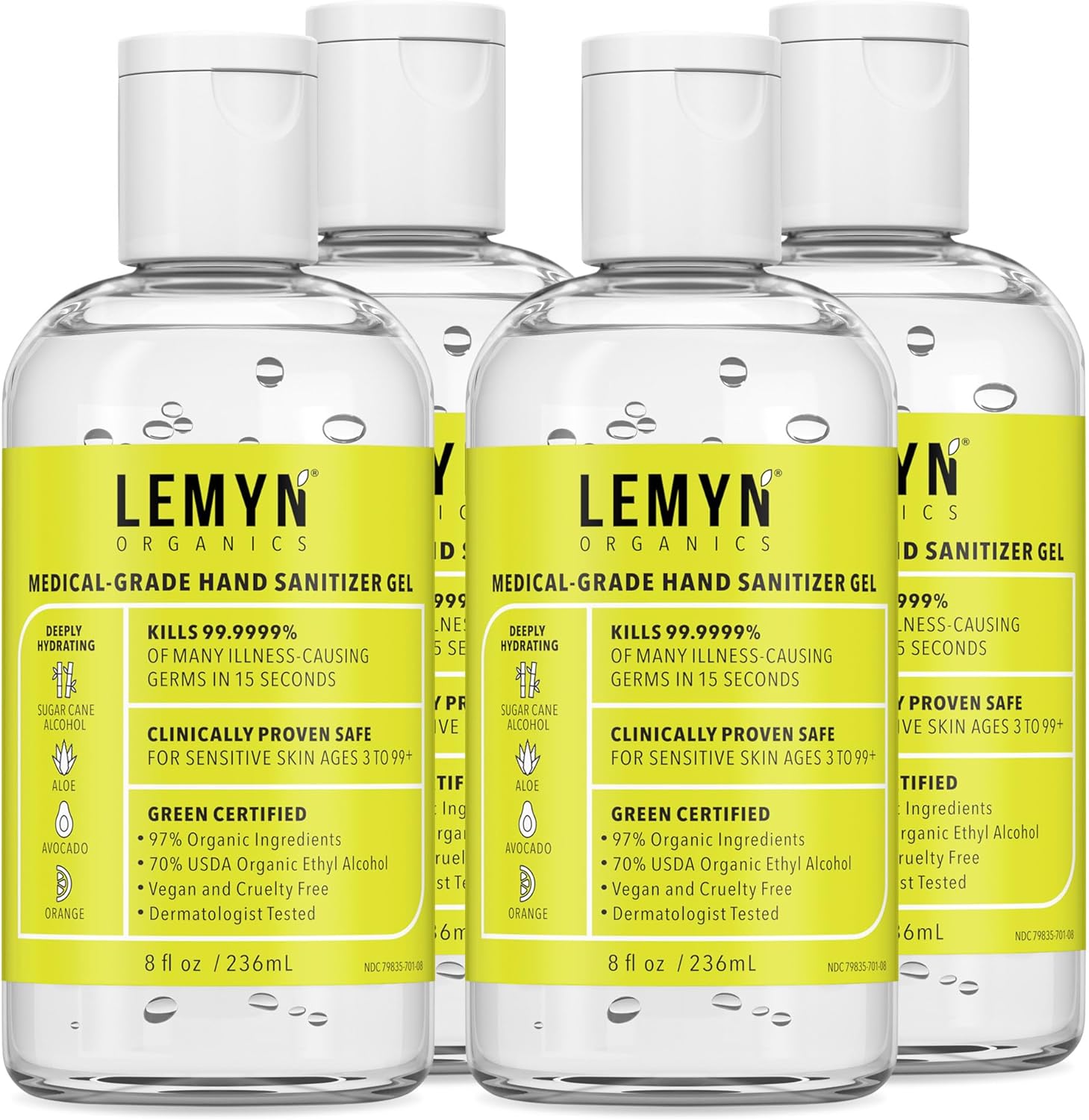 Medical Grade Hand Sanitizer Gel - 97% ORGANIC - 8 FL.OZ. Flip-Top (PACK OF 4)