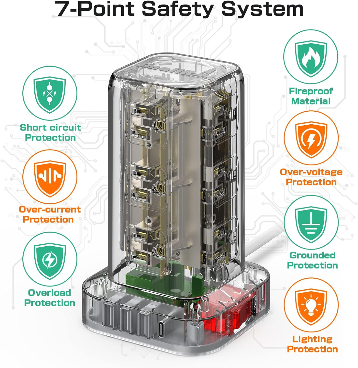 - 【Safe and Ease of use 】The 6.5FT upgraded extension cord with multiple outlets is made of pure copper. Reinforced design at the junction of the stand of power strip tower and the wire head. To protect the terminal from wear and tear. Environmental protection and fire-resistance PC shell with flame retardant at 1382℉ makes it more safe and longer lifetime.