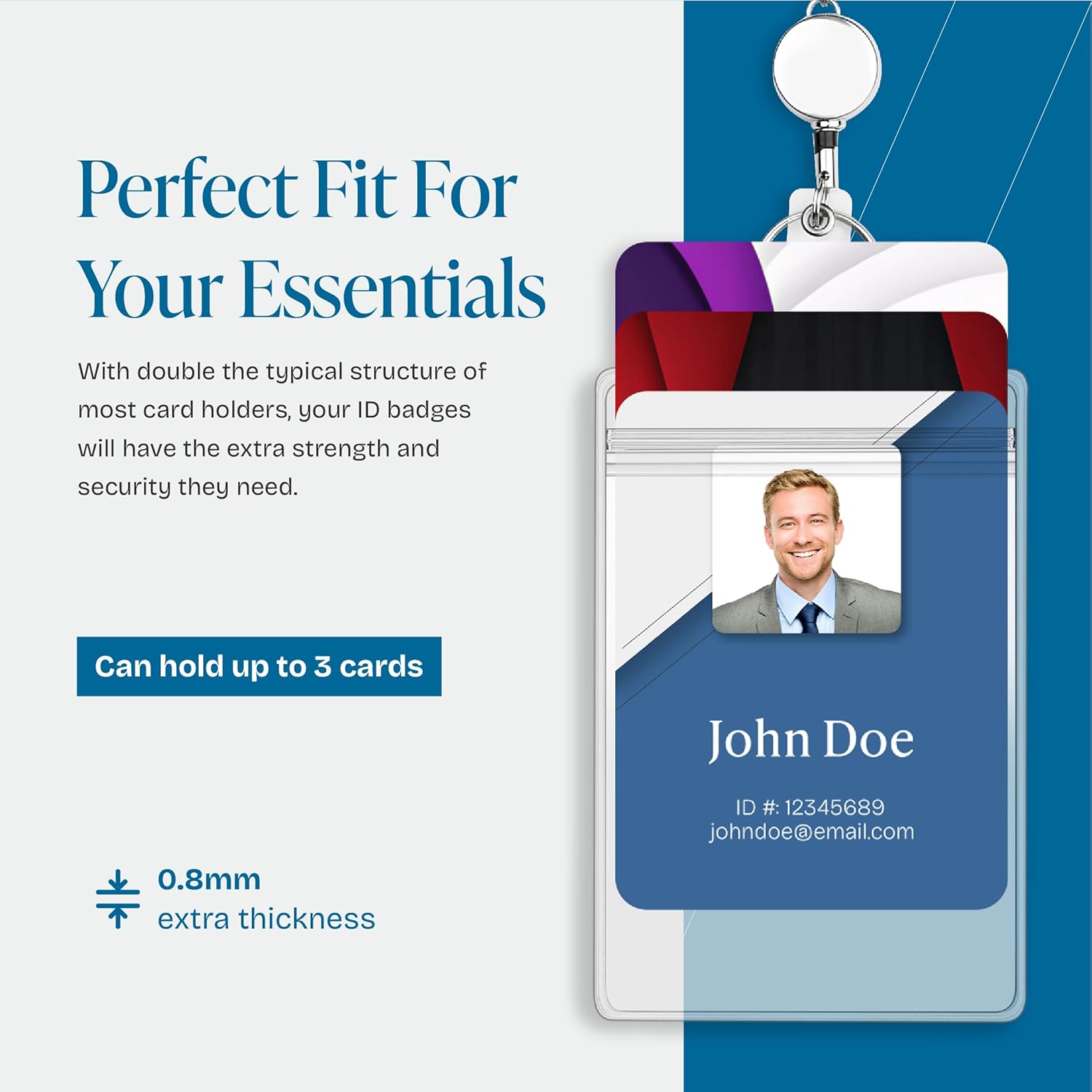 - ✔ Extra Thickness: The thickness of this id badge holder is 0.8mm compares to 0.4mm or even thinner of generic items on the market. It's soft, smooth and durable, never leave creases or break even if folded repeatedly. (Note: This card set is only suitable for credit card size cards or inserts within 2.6" x 3.7" inner size. Kindly search asin B09174BKP7 then you will find 4" x 3" card protector.)