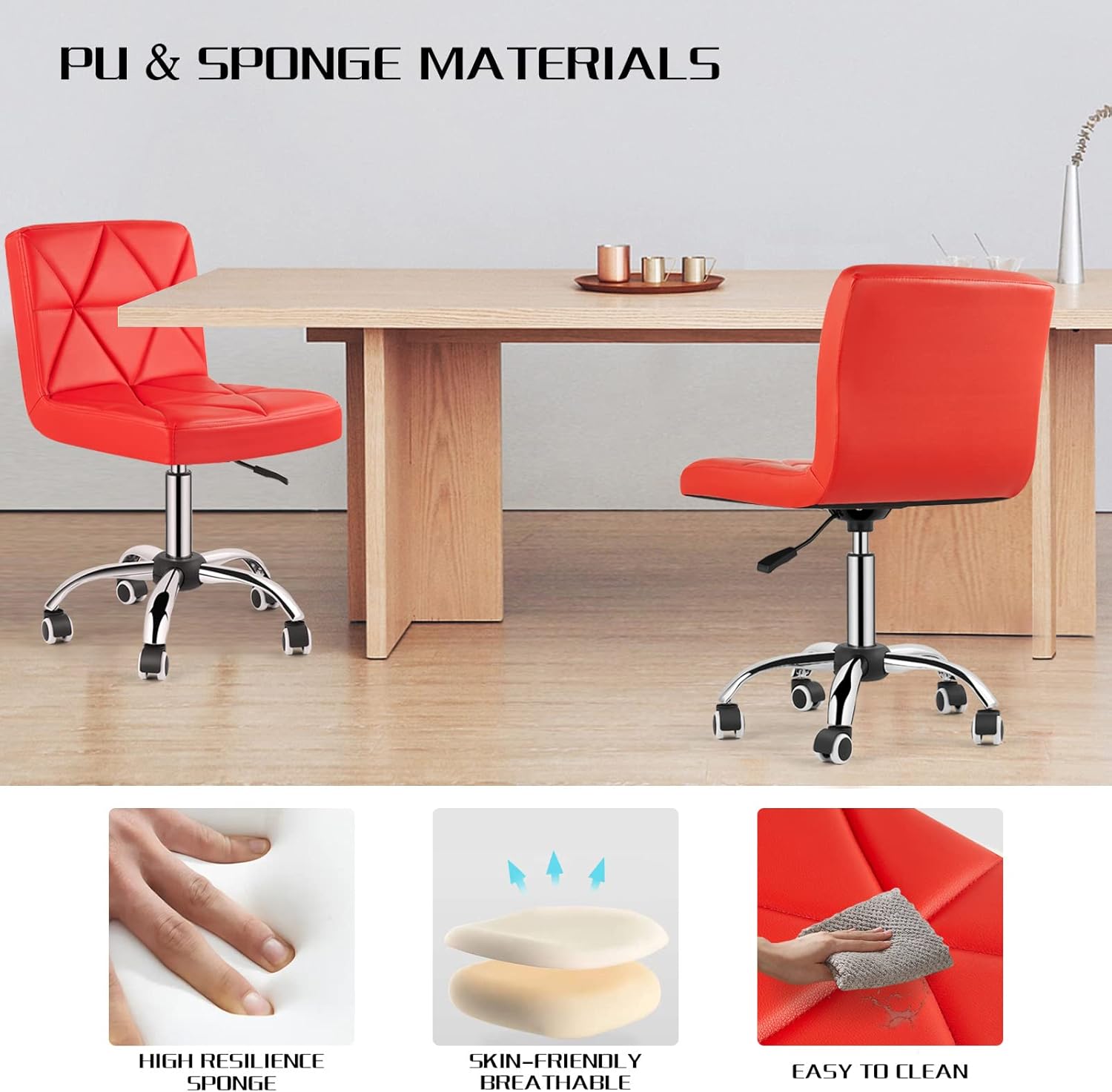 COSVALVE Armless Desk Chair, Mid Back Swivel Office Chair, Adjustable Task Chair with Rolling Wheels and Diamond Pattern, for Home Computer Barber, Red