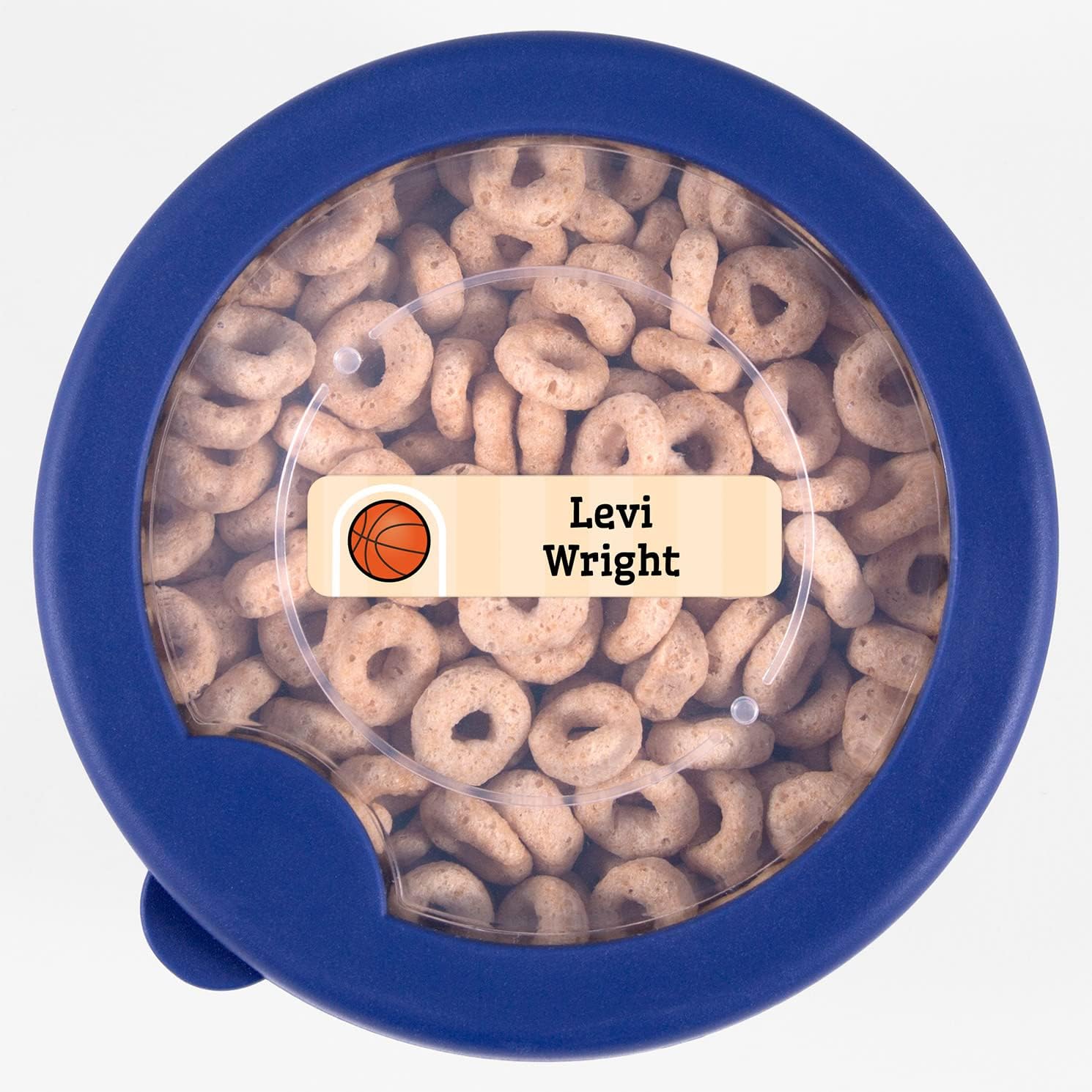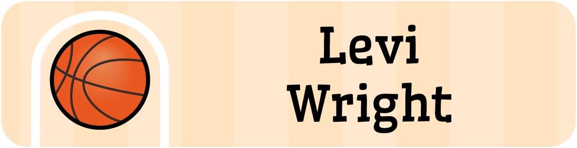 Name Bubbles - Custom Small Rectangle Name Labels for Kids (64 Labels) - Personalized Waterproof Name Stickers for Daycare, Lunch Boxes, Water Bottles, Shoes, School Supplies, & Camp (Basketball)