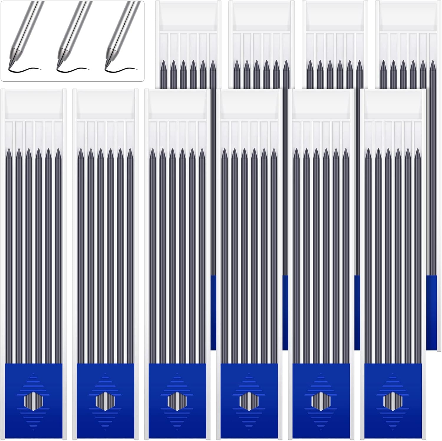Spakon 60 Pcs 2.8mm Lead Refill Carpenter Construction Pencils Marker Lead Refills Dry Mechanical Woodworking Pencil Tools for Writing Drawing Drafting (Black)