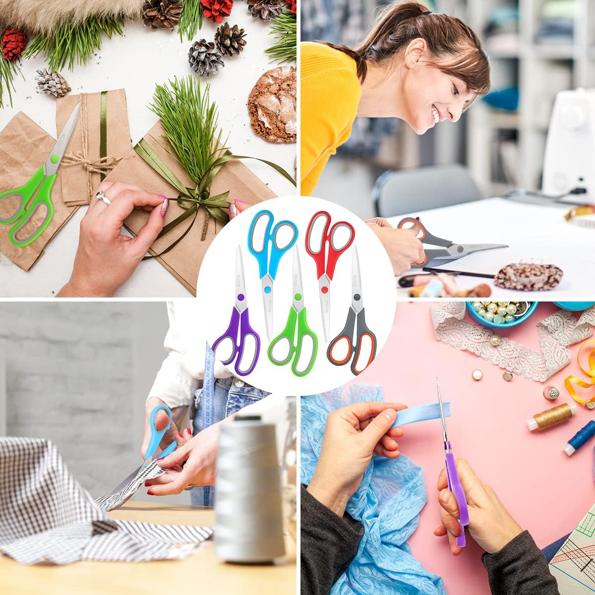 - Comfortable Use: Soft-grip handles for comfortable use, can be used left- or right-handed. Adjustable stainless-steel blade pivot for strength and smooth opening and closing.Work perfectly, and are comfortable in your hand.Can be used as scissors for office, scissors for school, scissors for home, 8 scissors, scissors bulk, Craft scissors, fabric Scissors, heavy duty scissors, scissors pack, Left scissors, sharp scissors, sewing scissors.