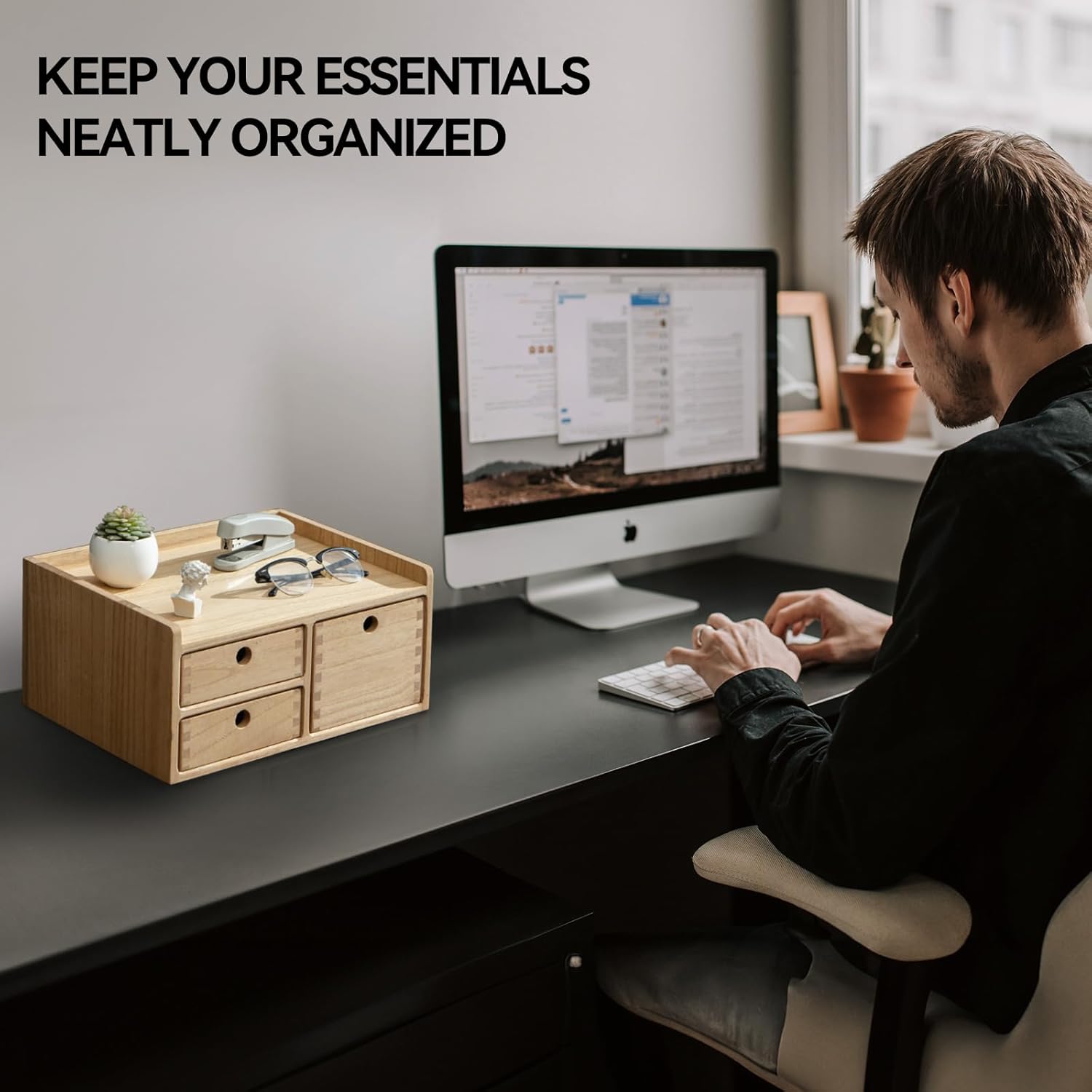 KIRIGEN Desk Organizer with 3 Drawers - Wood Drawer Storage Box with Trays for Tabletop - Workspace Office Toiletries Supplies Tool Caddy - Wooden Storage Cabinet Natural(DT1D3C-NA)