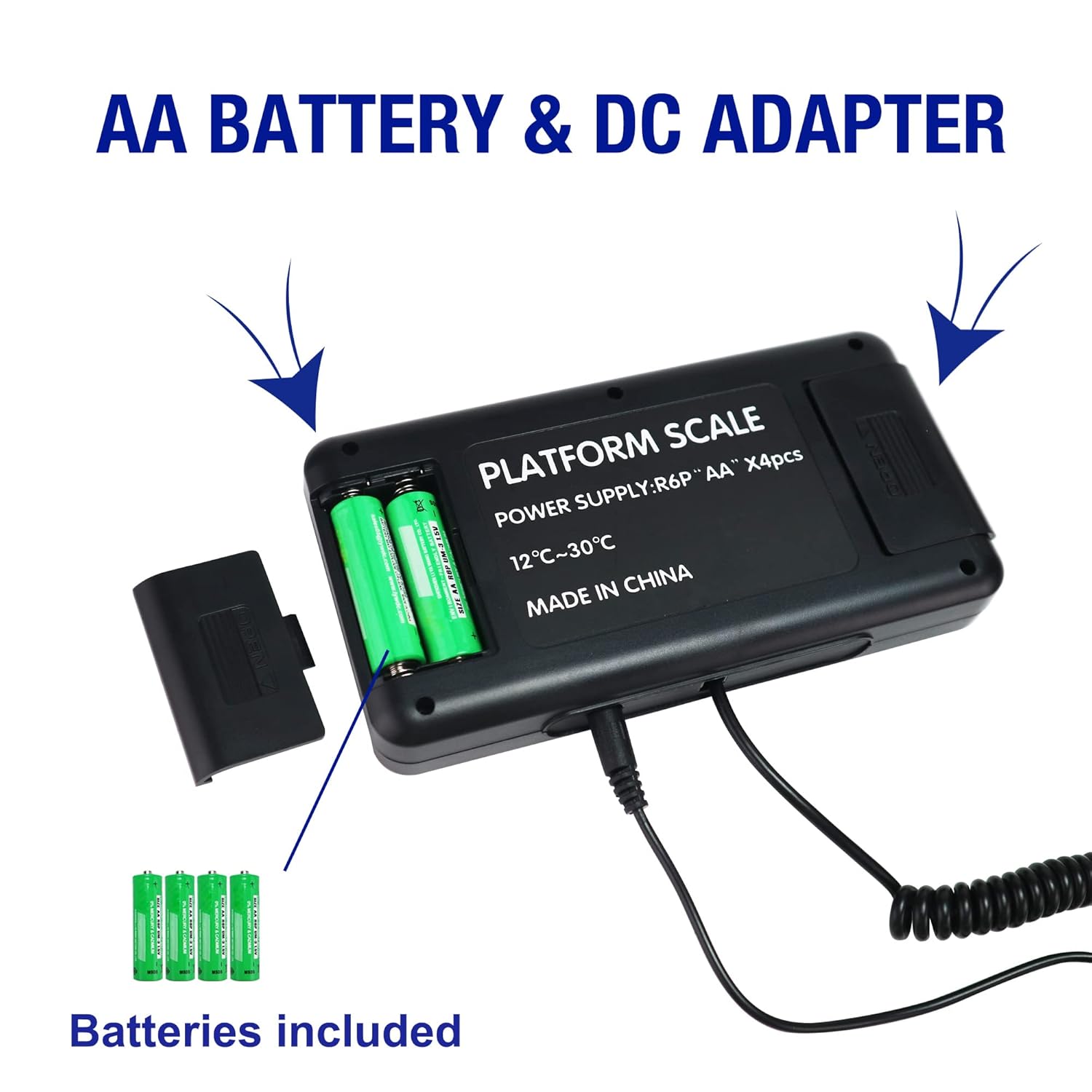 - AAA BATTERY & DC ADAPTER: The postage scale can be charged by DC adapter to ensure longer use. Also support battery power for easy use anywhere. DC adapter and AAA batteries are included.