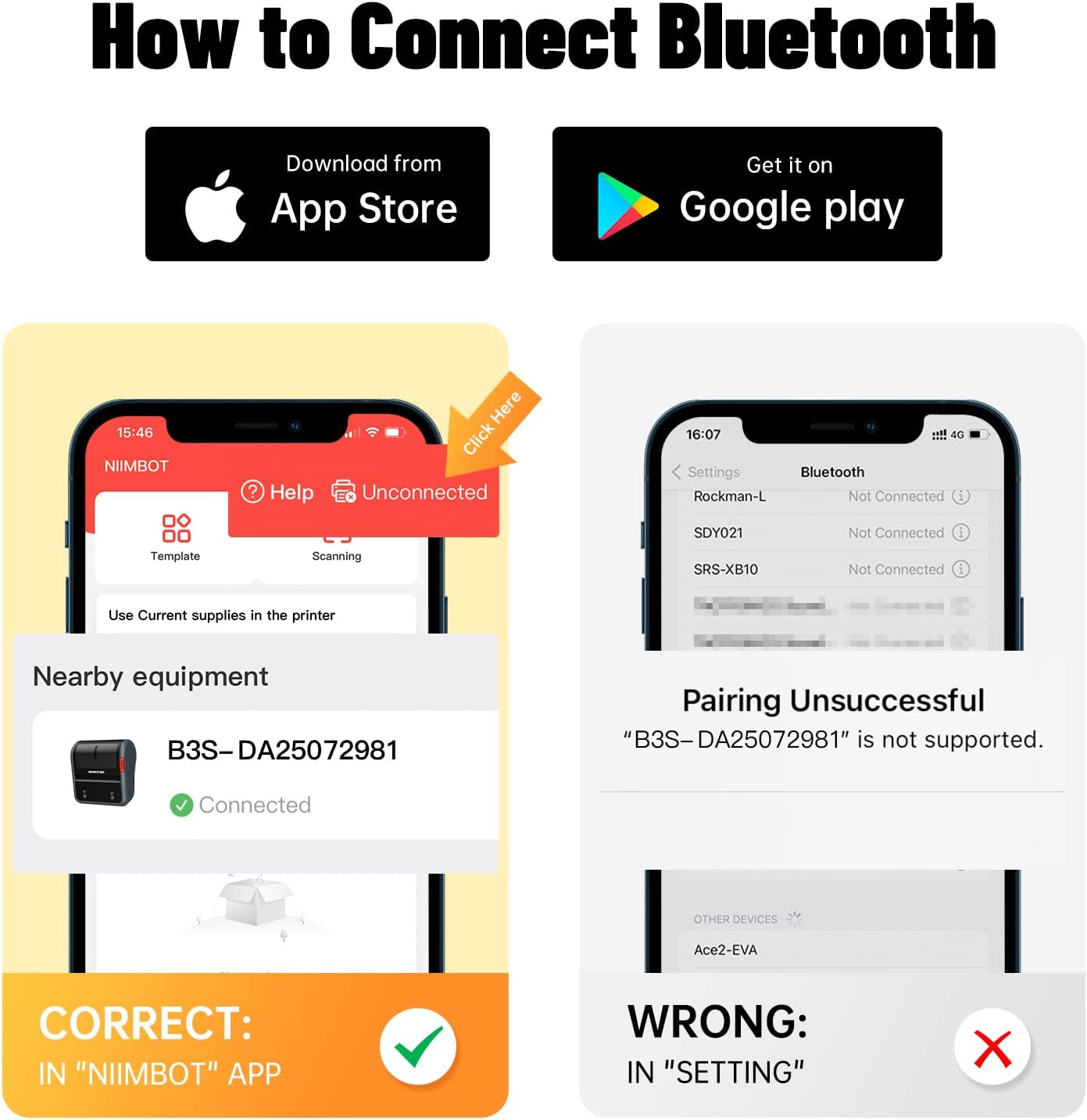 - Easy to Use--Using App: It is incompatible with iPad. Install NIIMBOT App from APP Store & Google Play, Turn on B3S label printer and open bluetooth connection. Choosing and connecting printer model B3S from NIIMBOT APP, Then Enjoy Printing. Compatible with Android and iOS, not compatible with Pad, not recommended for use with Pad. It compatible with PC, need to download the driver from the NIIMBOT official web.