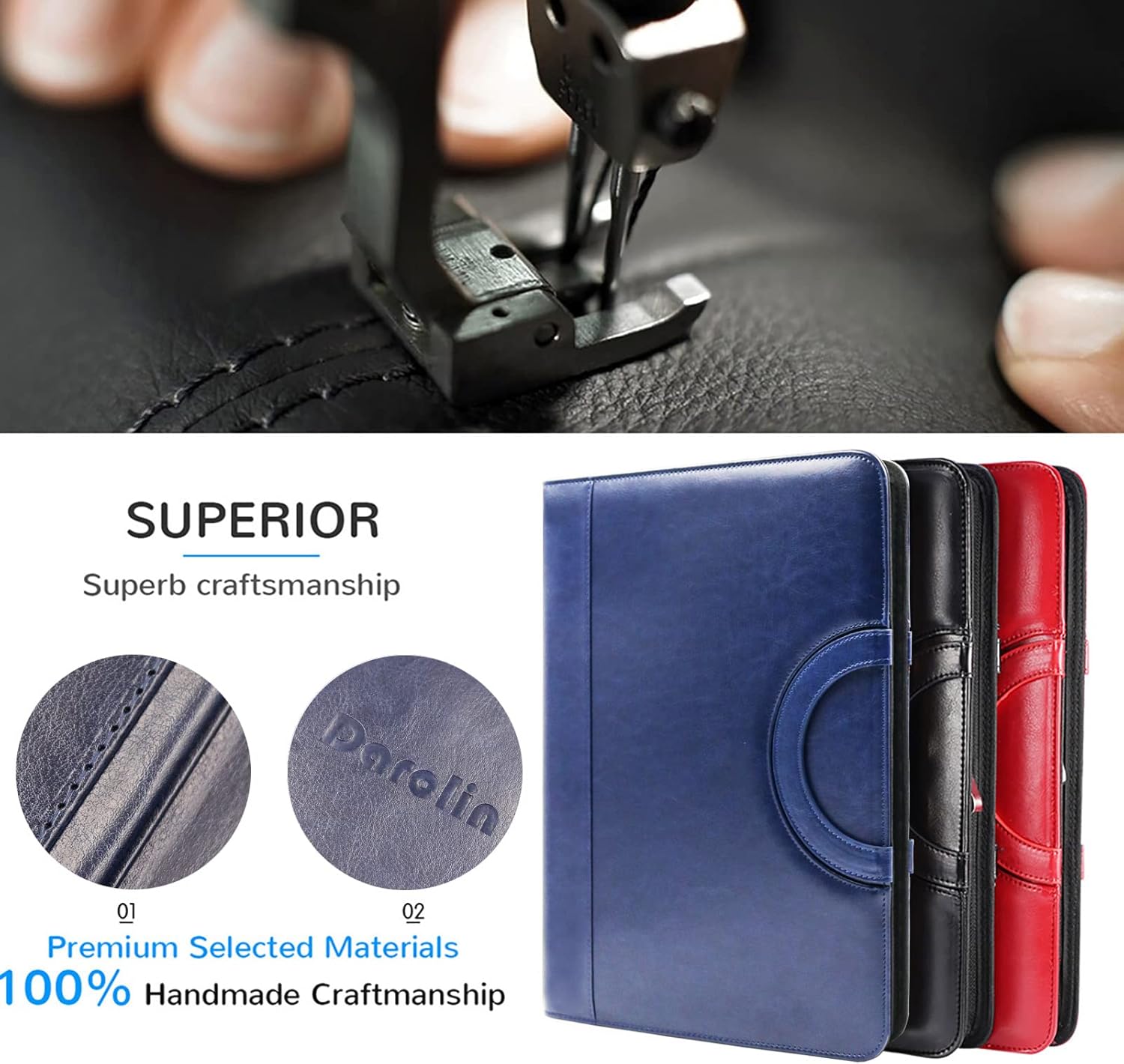 - [PREMIUM QUALITY] 100% HANDMADE. Darolin professional portfolio PU leather folder is handmade with SUPERIOR PU leather for a high-end look at an affordable price. It combines clean, elegance, lightness and functionality. We committed to offer quality products and superior service. Darolin brand philosophy is based on quality both in products and in services and if you are not satisfied with this product for any reason, return it and we will promptly refund your purchase price.