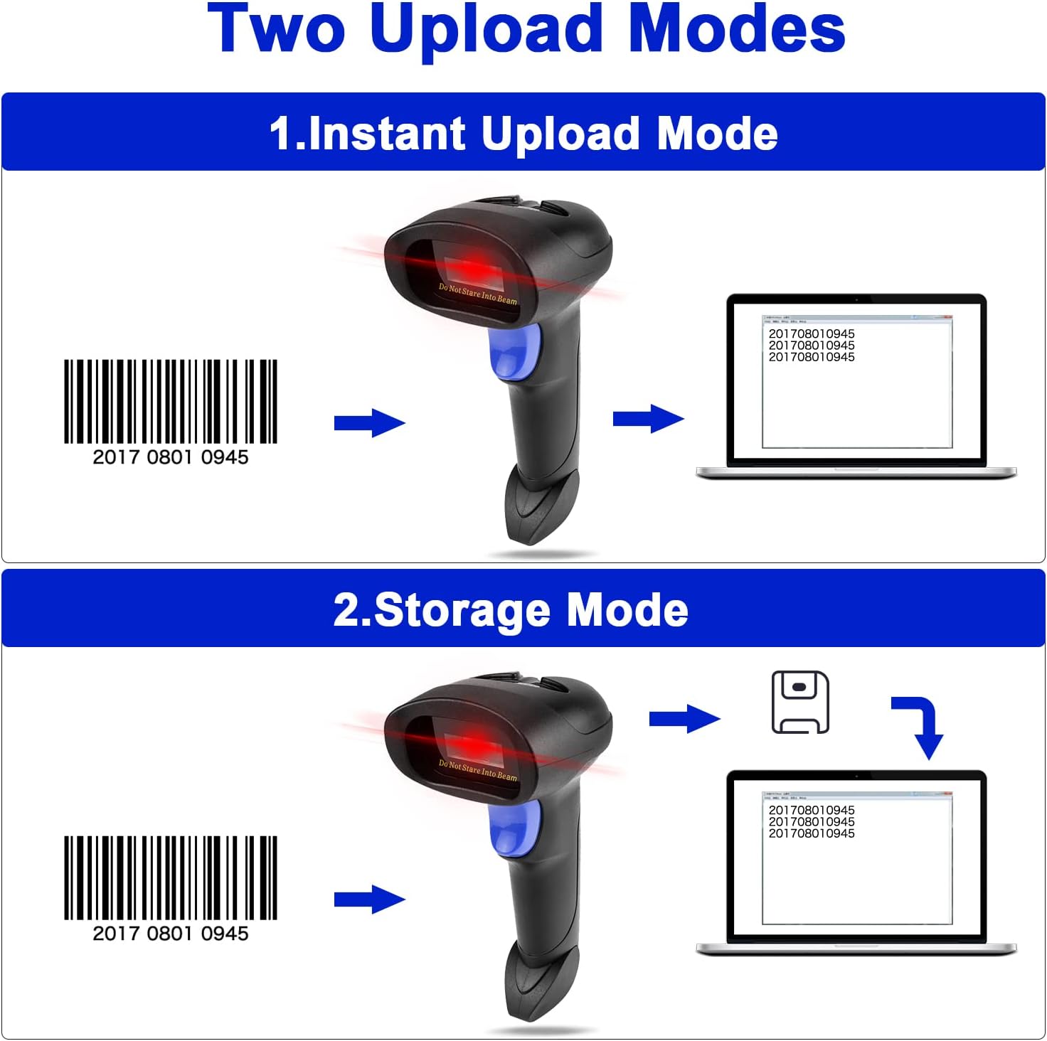 - ➤Three scanning mode - Key trigger mode + Auto-induction mode + Continuous Mode. There is no need to pull the trigger in auto-sensing mode and continuous scanning. Sometimes the self-sensing scanning function is in the inactive stage, please contact us and be at your service at any time.