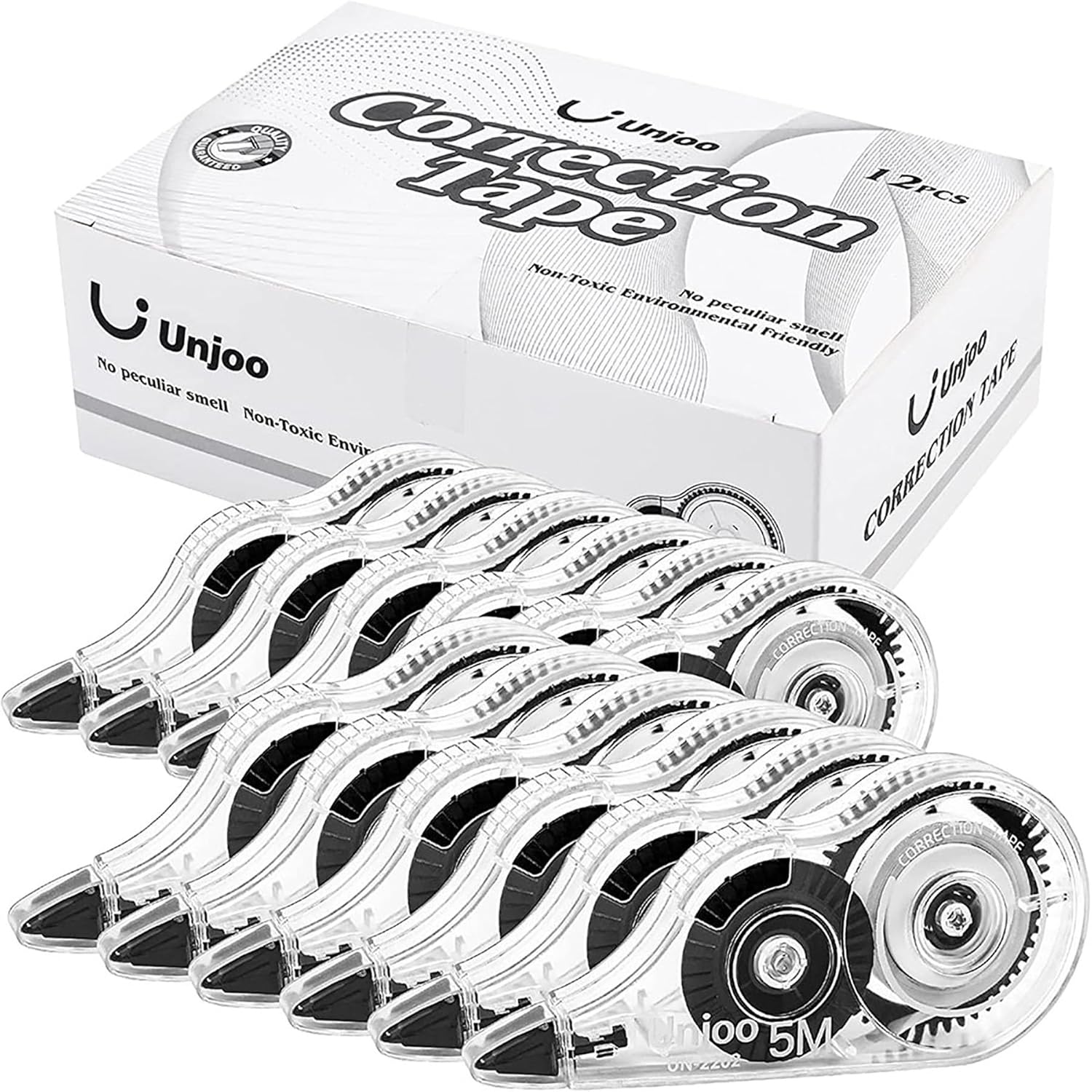 White Correction Tape, Easy To Use Applicator for Instant Corrections Wrong Writing At Any Time, For school, Office (12pack, 5M/196" x 0.2", Black)