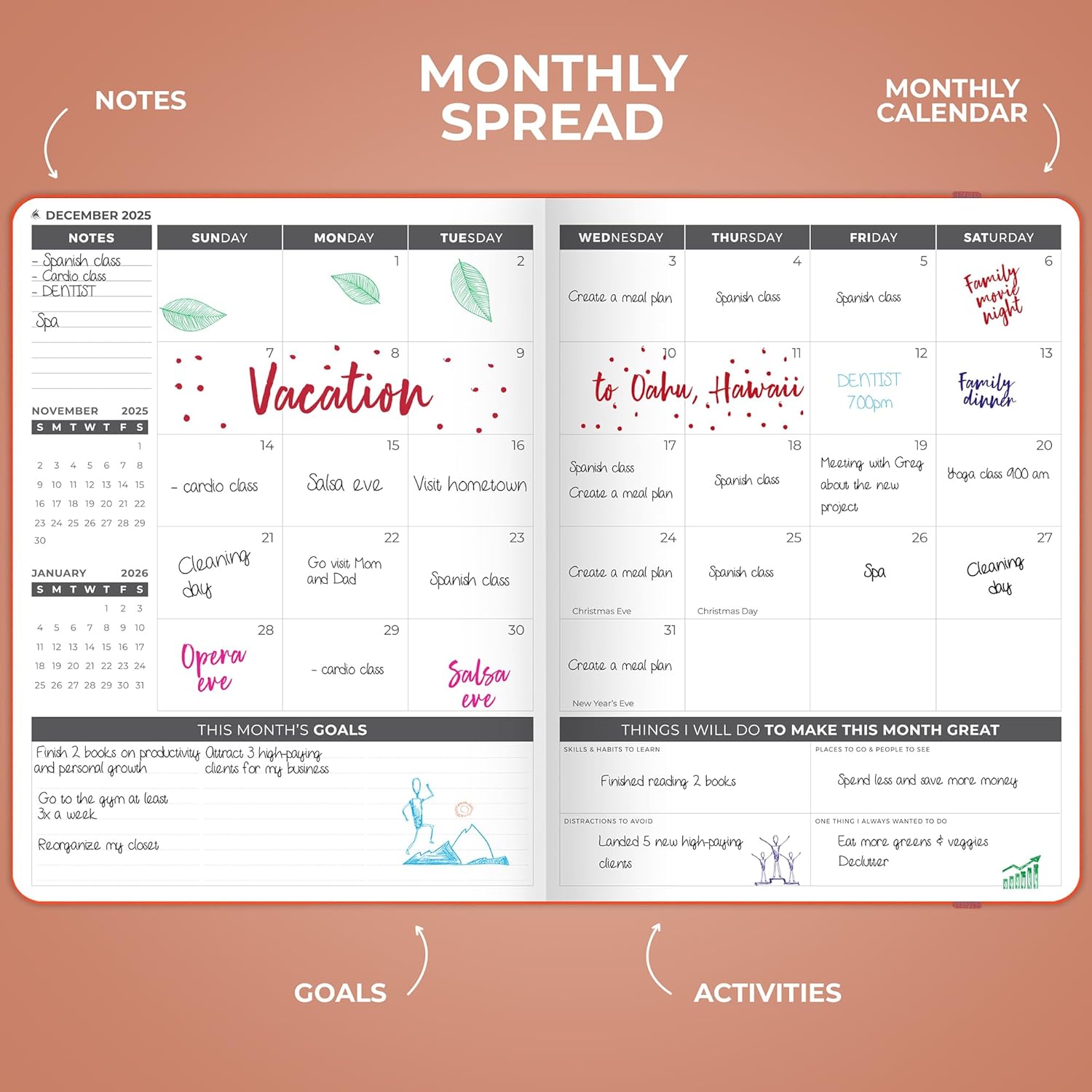- CREATE A VISION FOR YOUR FUTURE, SET GOALS & START PLANNING – This goal-setting planner 2025 will help you create a vision for your life, define your global goals, and incorporate them into your agenda.