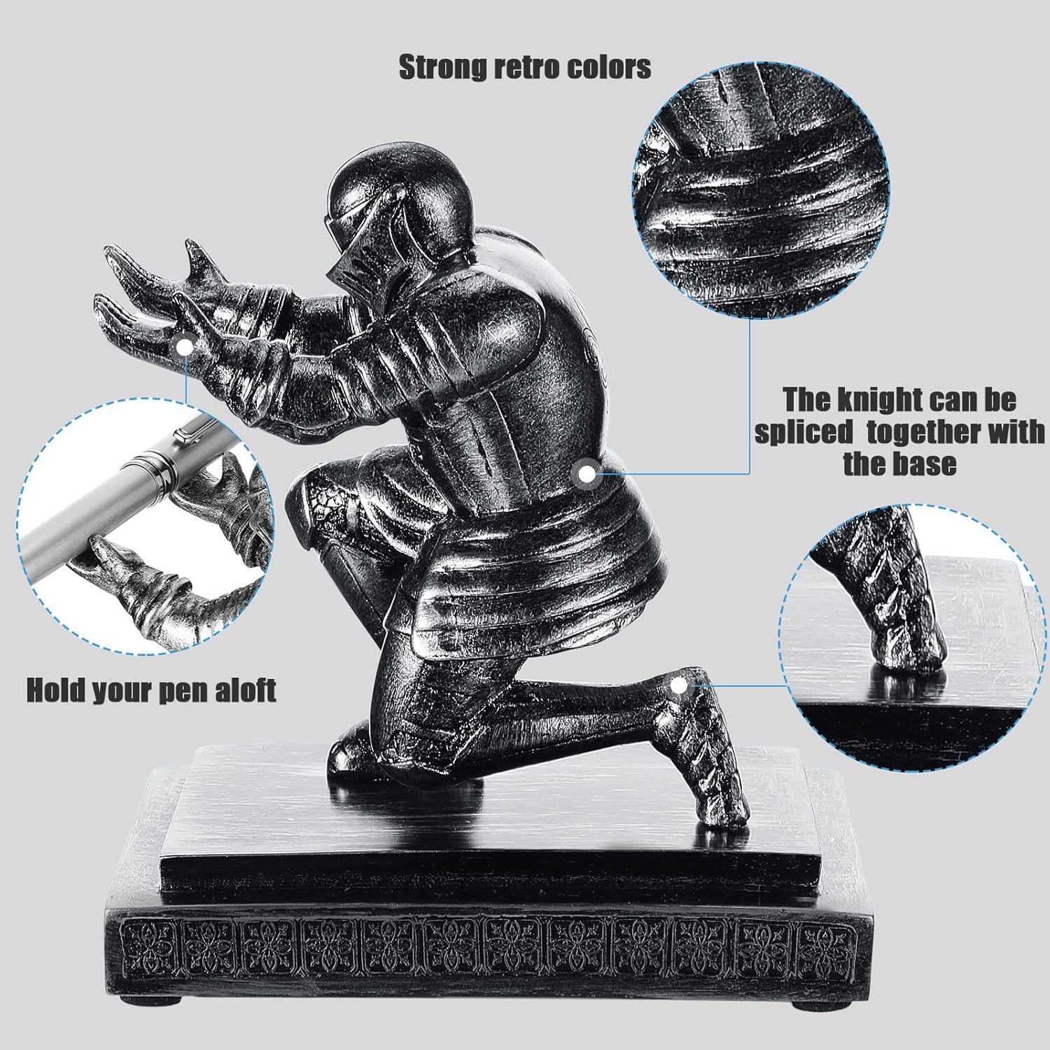- Practical and Funny Set: you will receive 1 piece of desk pen stand that is featured with the faithful knight image who is getting down on one knee, and whose hands seem to be holding something important, allowing you to easily fix your pens, glasses, and it is also equipped with 2 pieces of pens for your daily service, which is a practical and funny set that can satisfy your various demands