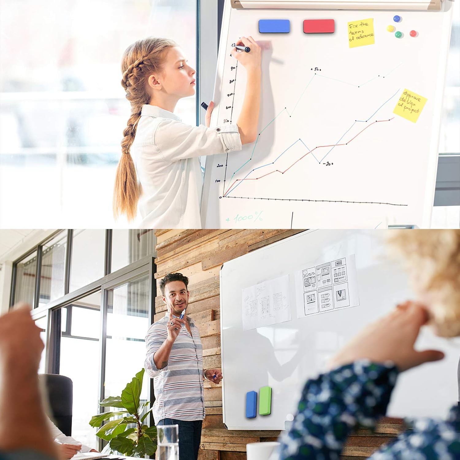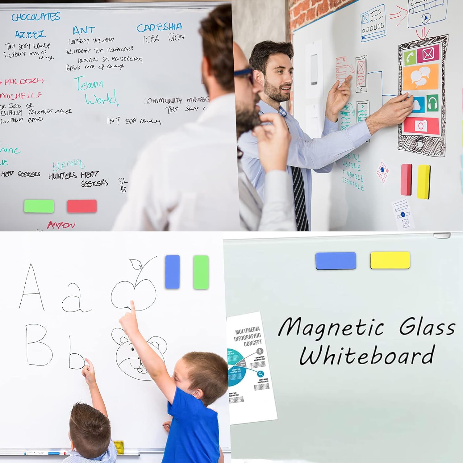 - What you get: Comes in 4 bright colorful magnetic whiteboard erasers, yellow, blue, green, red