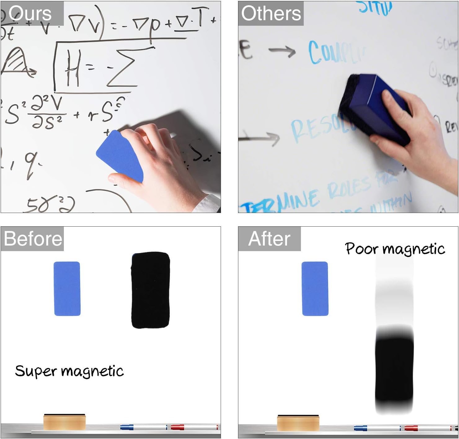 - Super magnetic: We added two magnets to the whiteboard, which is 3 times higher magnetic than the others. The magnet is strong enough to be used on any other magnetic surface, such as metal file cabinets, refrigerators, magnetic soft whiteboard. Never Lose your Eraser again