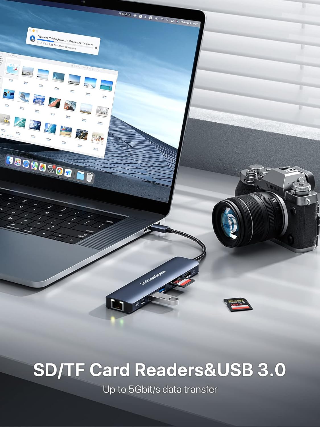 USB C Hub Multiport Adapter, DockteckExpand 7-in-1 Type C Hub with 4K 60Hz HDMI,1Gbps Ethernet,100W PD,2 USB 3.0 Ports,SD/TF Card Slots for MacBook Pro, MacBook Air, iPad Pro, Surface, Steam Deck