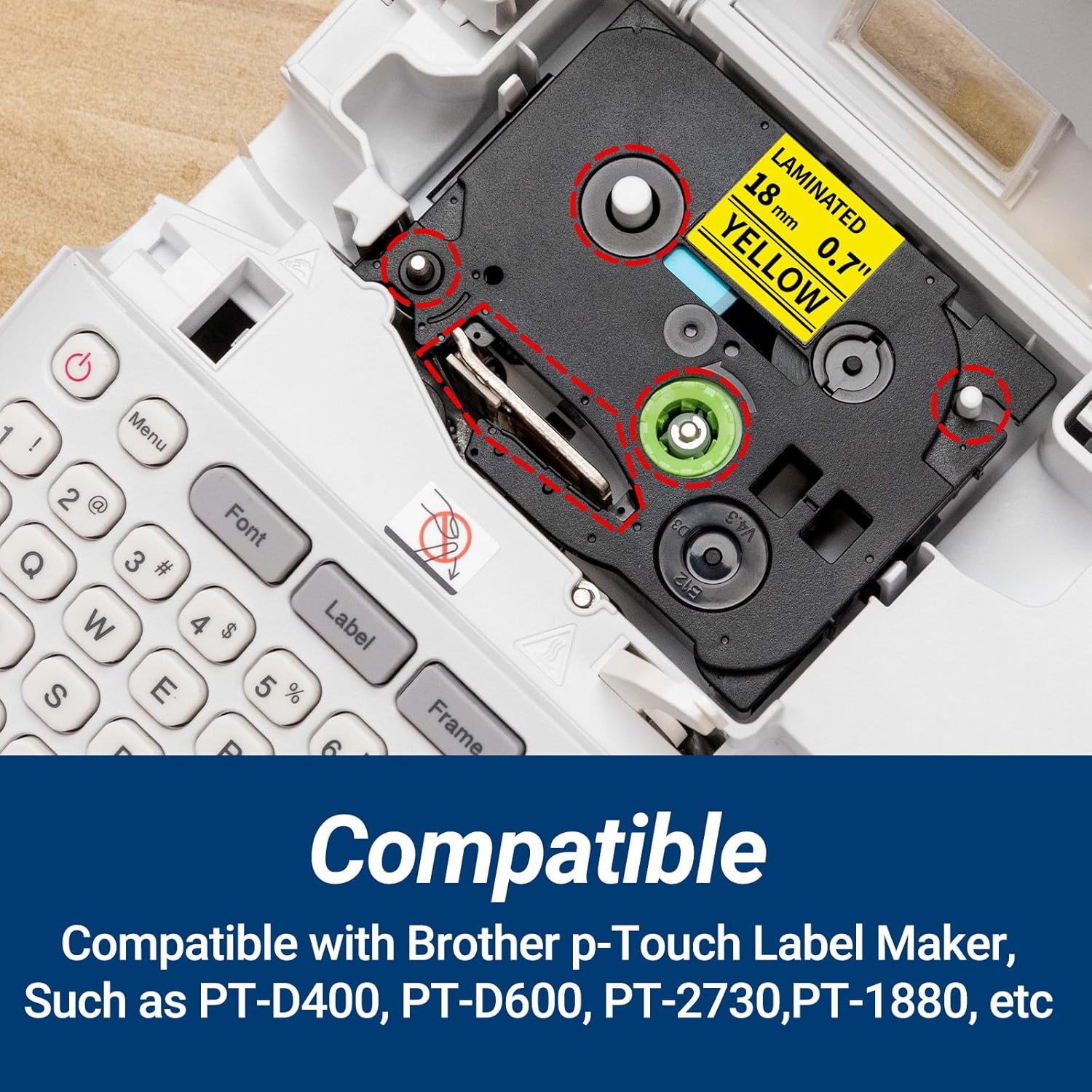 - Laminated and durable tape: These compatible Brother ptouch 18mm yellow tze label tapes TZe-641 are laminated. Labelife TZe-641 label maker tapes are perfect for indoor and outdoor use