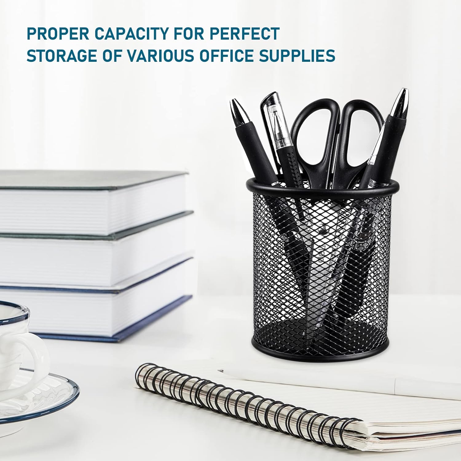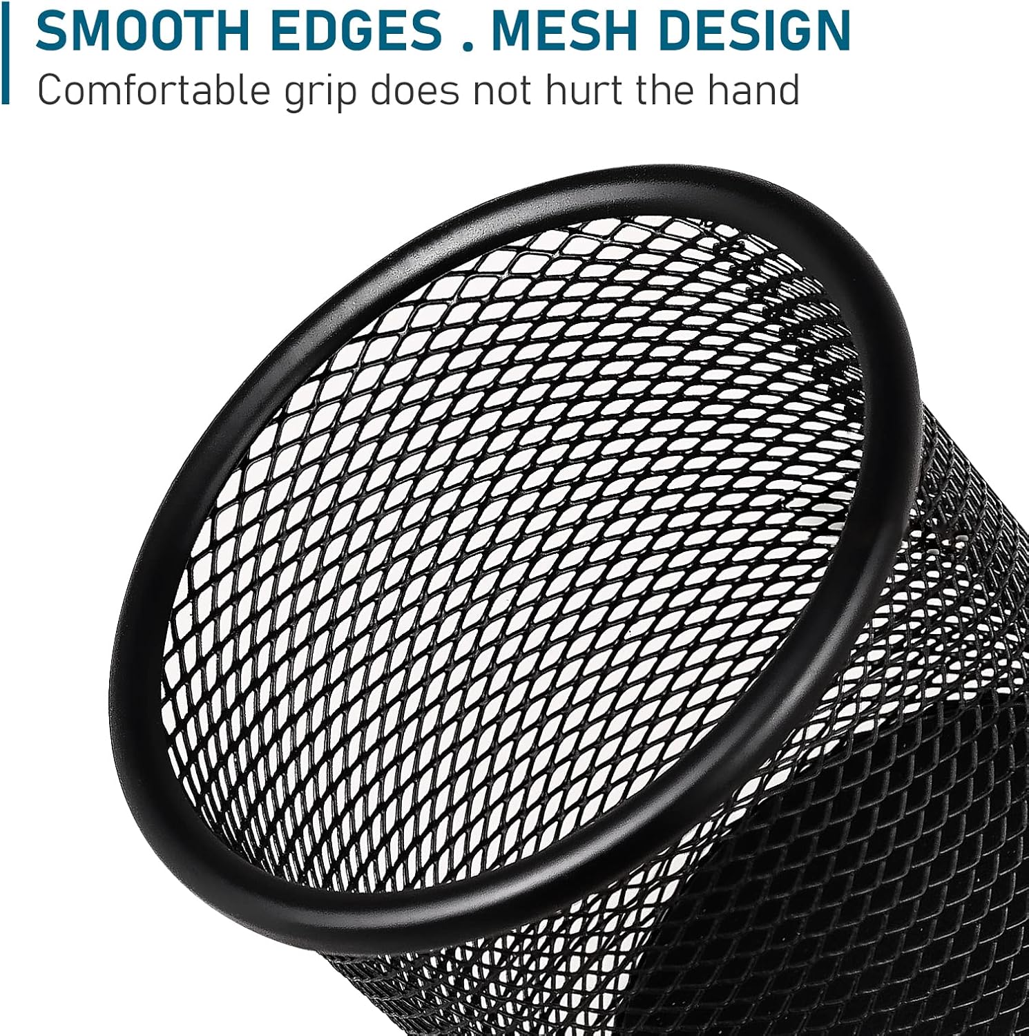 QYH Mesh Pen Cup Metal Pencil Holder for Desk 6 Packs Black Pen Organizer Office 3.54x3.93 Inch