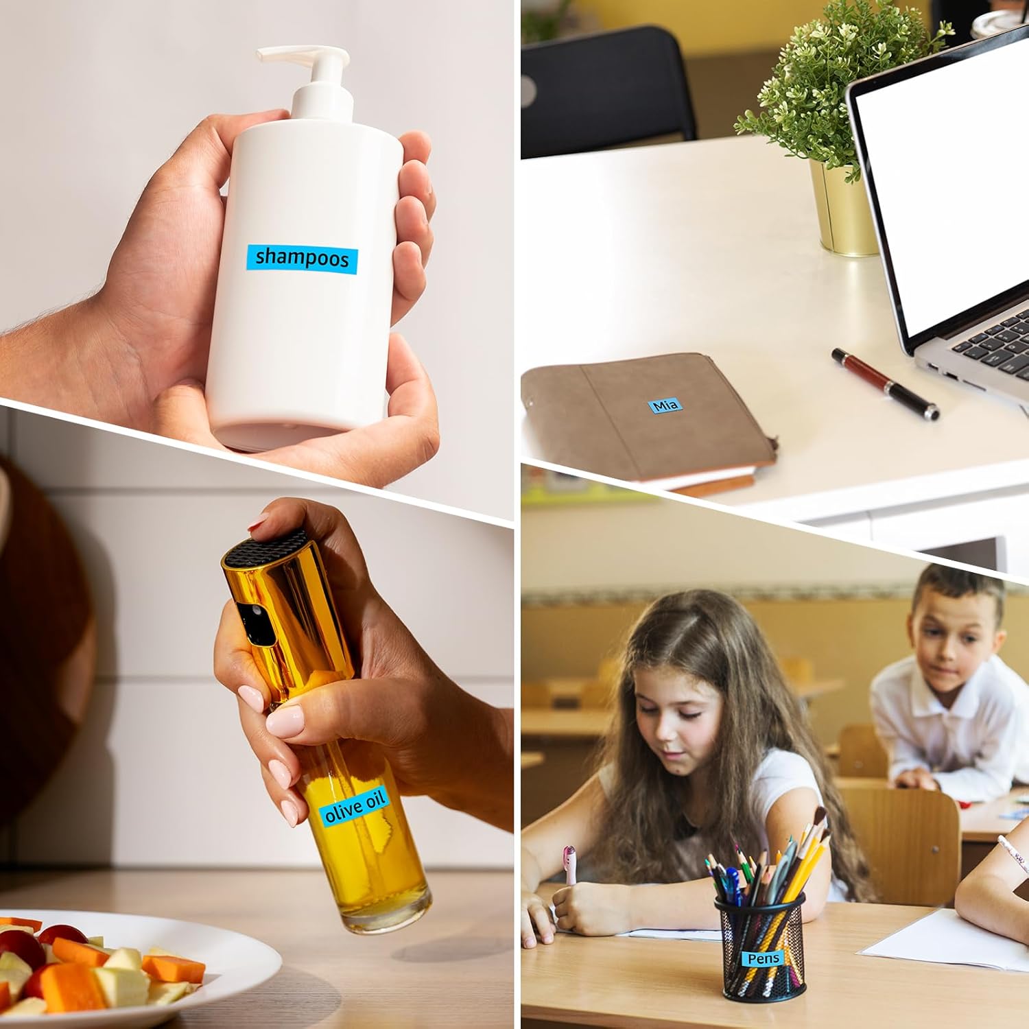 - Non-Laminated durable labels: water-resistant, fade-resistant, abrasion-resistant, chemical-resistant, temperature-resistant. They are an ideal solution for labeling tasks including files, folders, classify files, shelves, kitchen, books, supply cabinets, accessories, etc.