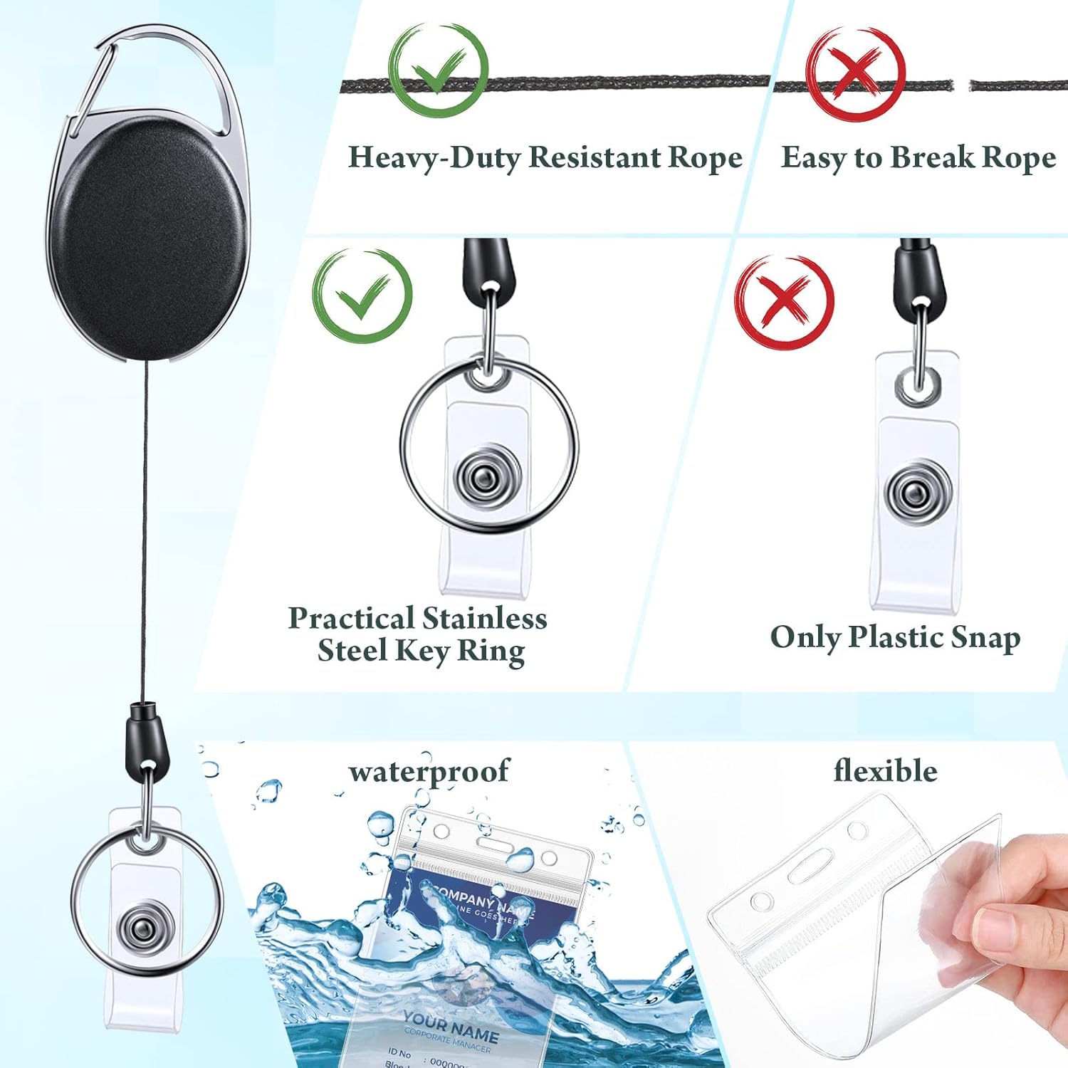 - Quality Material: the heavy duty badge holder consists of wear resistant polyester retractable cord, plastic card holder, stainless steel key ring, and the name tag holder is made of PVC which is soft and sturdy, can easily load the cards and serve you for a long time