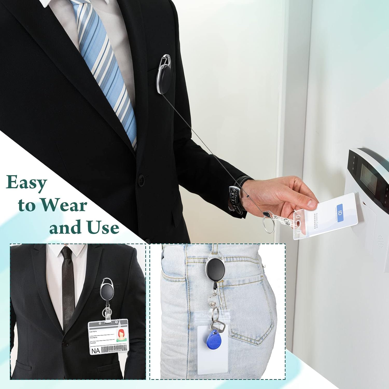 - Package Includes: you will receive 60 pieces of heavy duty retractable badge reels and 60 pieces of vertical clear ID card holder, enough quantity for your replacement needs, and you can share them with your friends, family, and colleagues