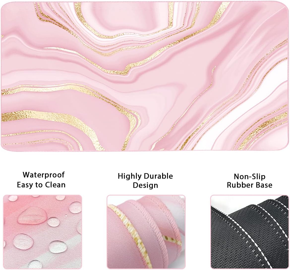 Keyboard Mouse Pad Set, Extended Mouse Pad+Keyboard Wrist Rest Support, Memory Foam Ergonomic Easy Typing, 3Pcs (35.4×15.7 in) Desk Pad Set for Home Office Study Game- Pink Gold