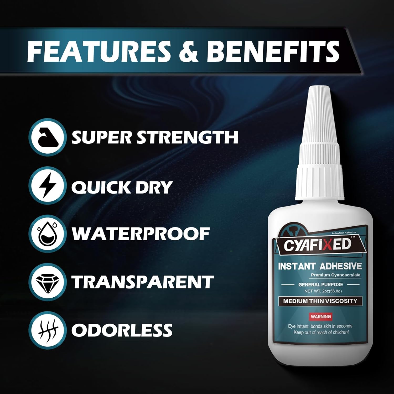 Super Glue Liquid, Instant Clear Cyanoacrylate Medium Thin Viscosity Adhesive, Food Safe CA Glue for Shoe Repair Leather Ceramic Plastic Glass Metal Wood Aquarium Porcelain Rubber Pottery Model Craft