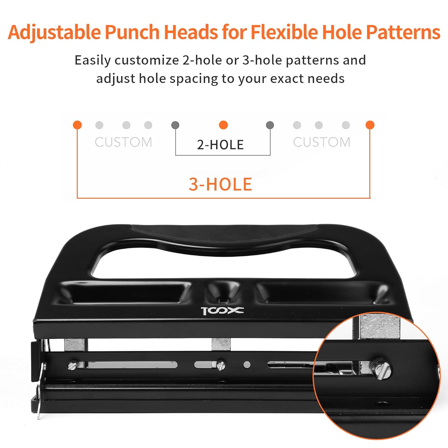 - Adjustable 2 or 3 Hole Punch: Easily switch between 2-hole and 3-hole settings with fully adjustable punch heads. Compatible with A4, US Letter, and various binder types—ideal for school, office, and home use.
