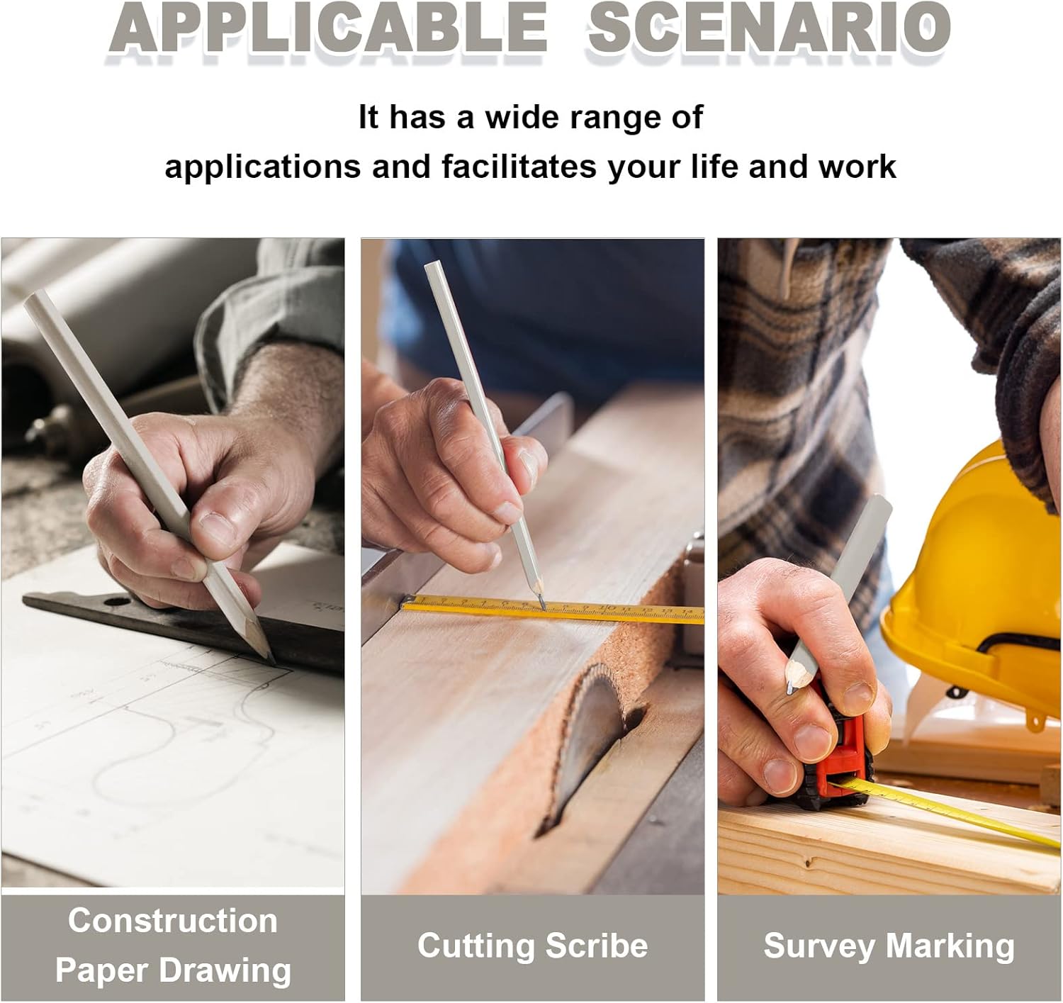 - Multipurpose: wood carpenters pencil can withstand the pressure of marking on hard, rough, and uneven surface materials, such as wood, plywood, cardboard, unprocessed wood, wood, paper, concrete, bricks, and so on