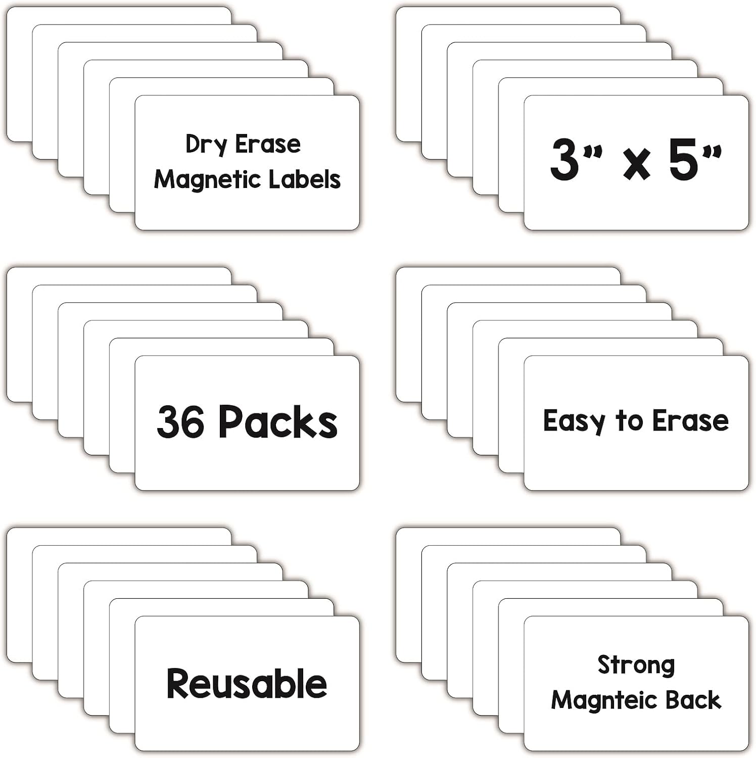 Dry Erase Magnets, Blank Magnetic Dry Erase Labels, 36-Pack, Erasable Magnets for Whiteboard, Multipurpose White Magnetic Labels to Write On for Classroom, Home, Education, Office, 3" x 5"