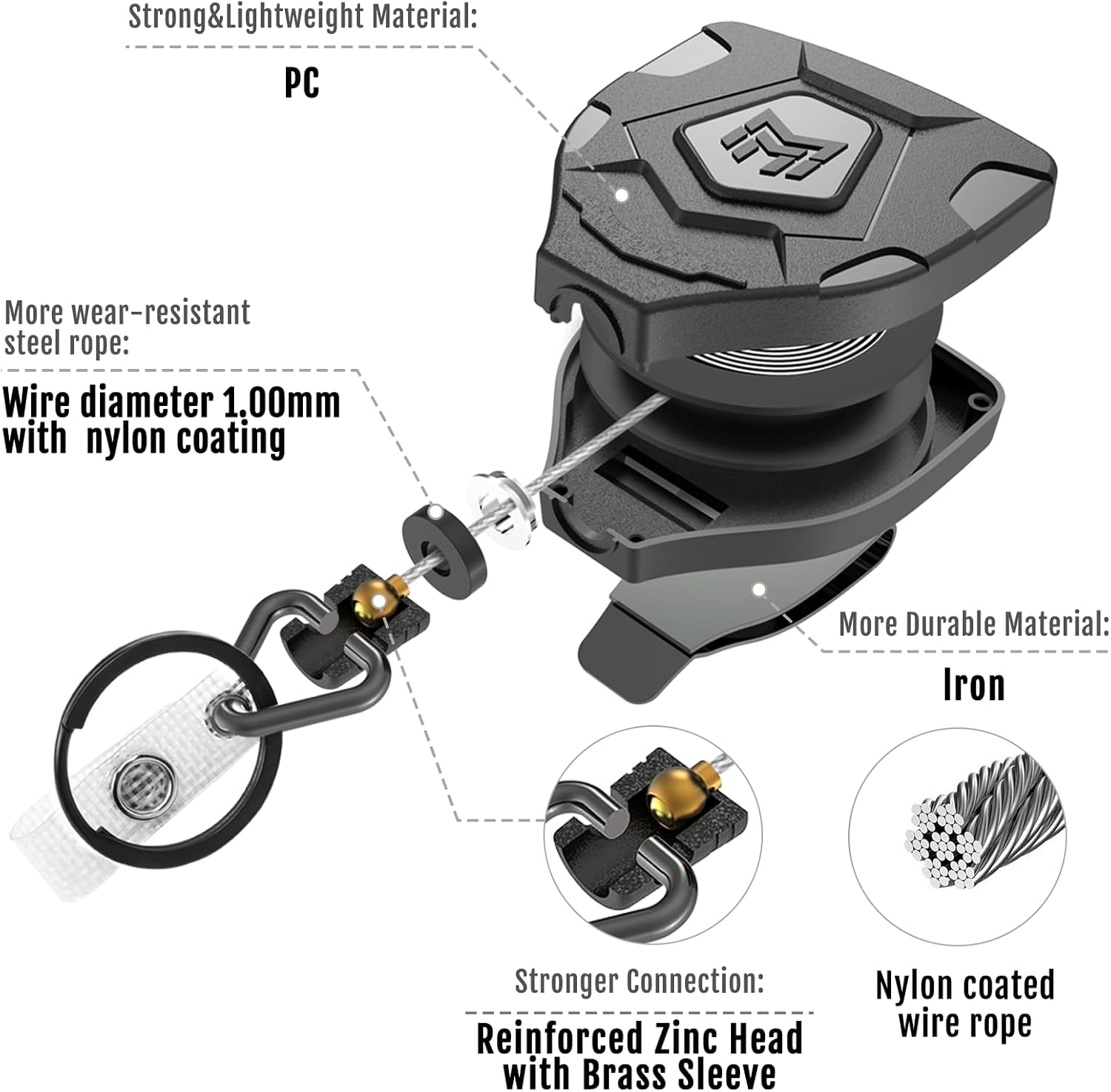 - [STRONGER MATERIAL]: Our retractable ID holders use PC shells and iron badges clips, and its powerful impact performance can keep you away from fragile plastic.