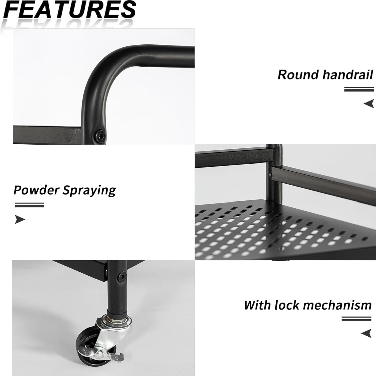 - 【HIGH QUALITY MATERIAL】This 3 Tier Rolling Cart Is Made Of Heavy-duty Carbon Steel And Features An Electrostatic Powder Spraying Process That Coats It With A Layer Of Protection Against Rust And Corrosion.Each Tier Can Hold Up To 40 Pounds,Making It Perfect For Storing A Variety Of Items.