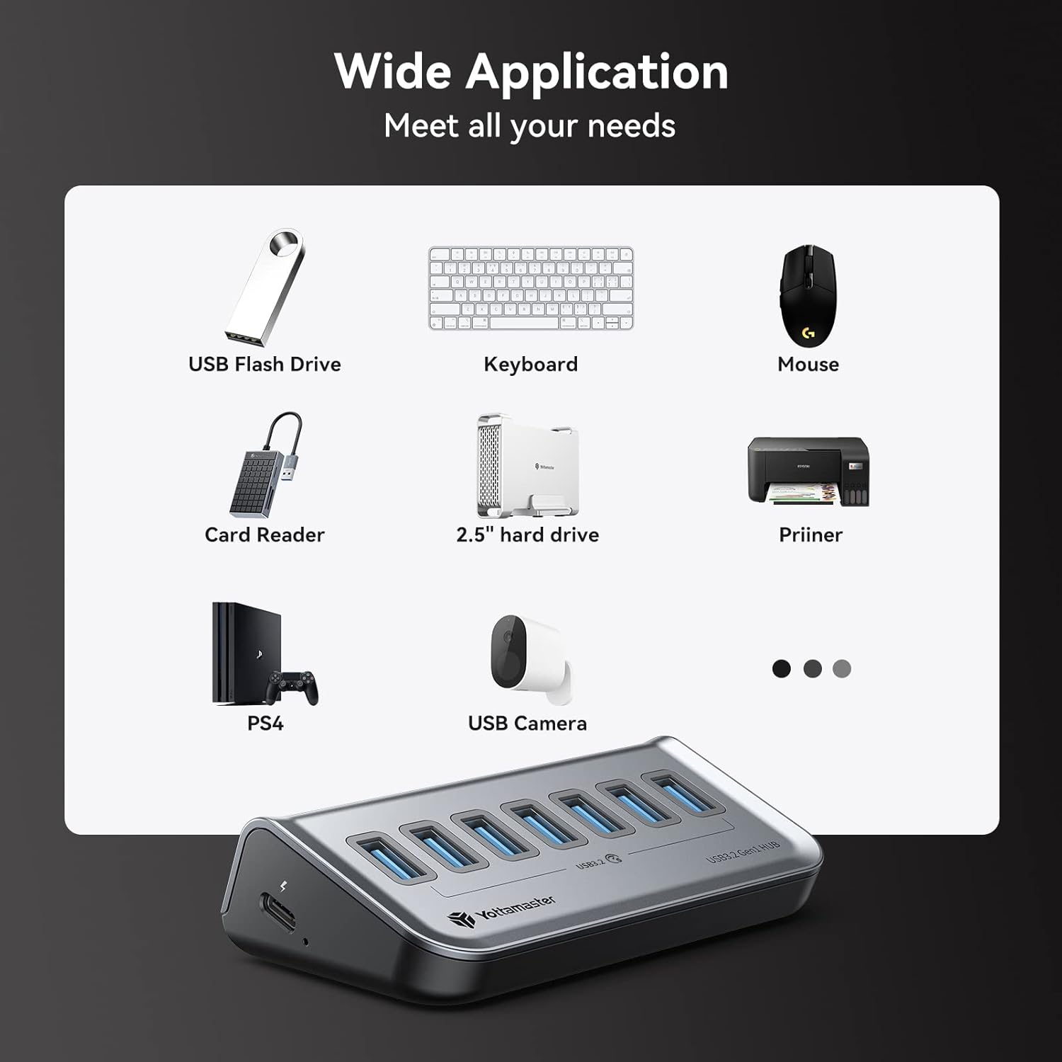 - 【What You Get】Yottamaster 7 ports usb 3.0 hub, 1.6ft 10Gbps USB-C Cable with USB C to A adapter, Instruction manual.