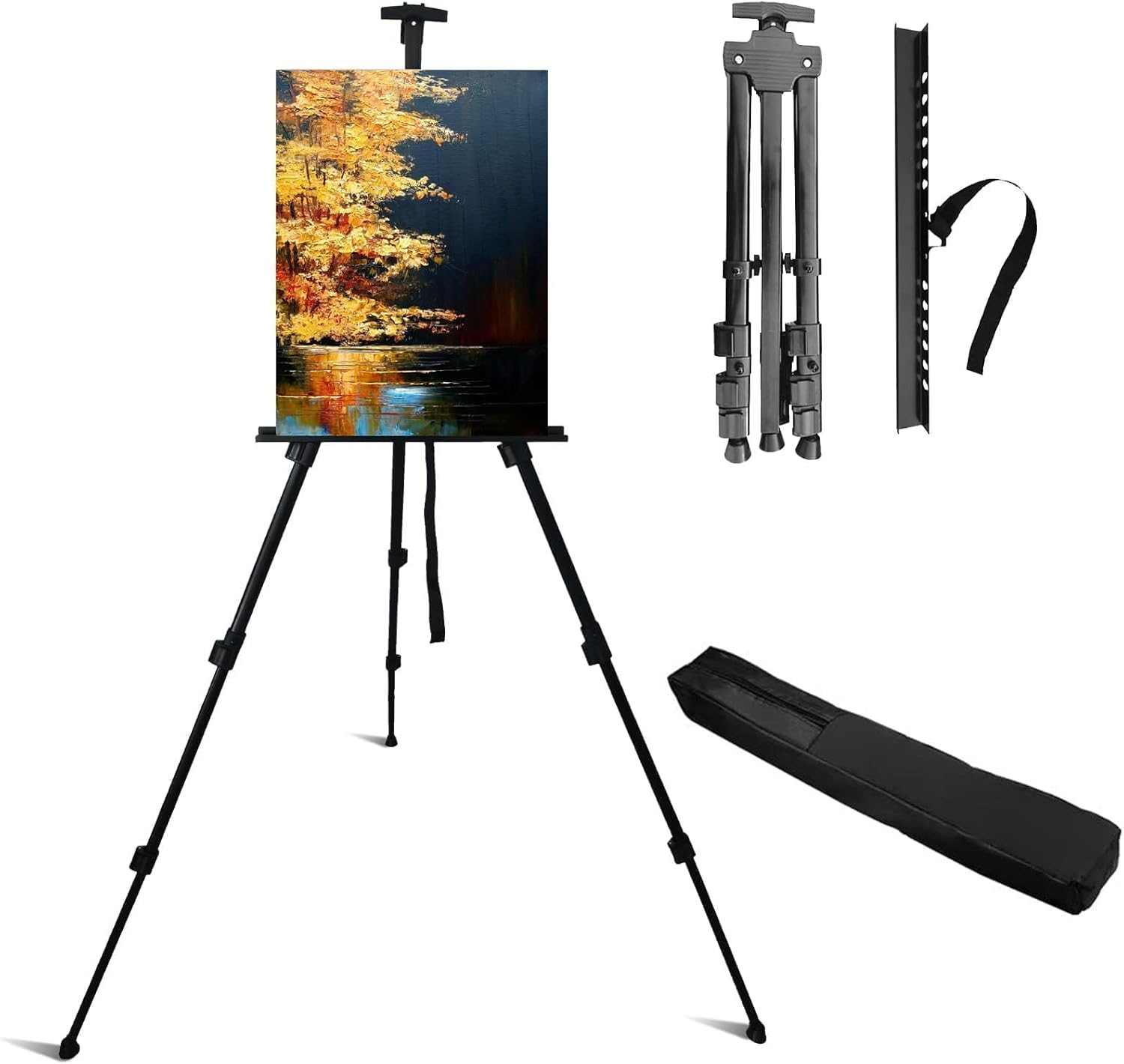 - [Art Easel Stand Height ADJUSTABLE] Easel for paining canvas can adjustable from 17 inches to 66 inches in height perfect for floor easel or tabletop easel displays, art easel folds to just 21" for easy storage and transport, drawing easel easy to turn knobs for quick height and angle adjustments