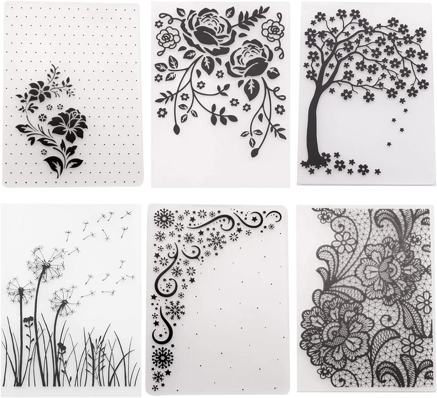 6Pcs Flower Snowflake Plastic Embossing Folder DIY Craft Template Molds Stamp Stencils Scrapbook Paper Cards Photo Album Making Tools Embossing Folders Handmade Art Craft Supplies Decorating Mold