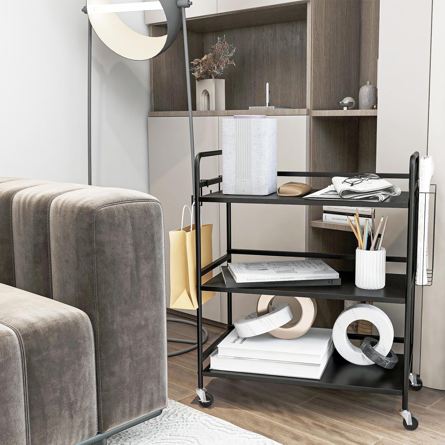 HDANI 3 Tier Metal Utility Multipurpose Rolling Cart,Large Capacity Heavy Duty Cart with Lockable Wheels Rolling Cart with 2 Lockable Wheels for Home,Office,Kitchen,Bathroom,Bedroom(Black)
