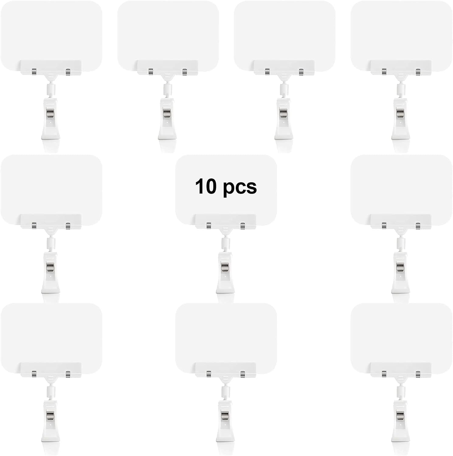 Display Clips, 10 Pack Double Head Rotating Reuse Food Sign Holder, Mini Plastic Chalkboard for Business, Party, Office, Exhibition (White)