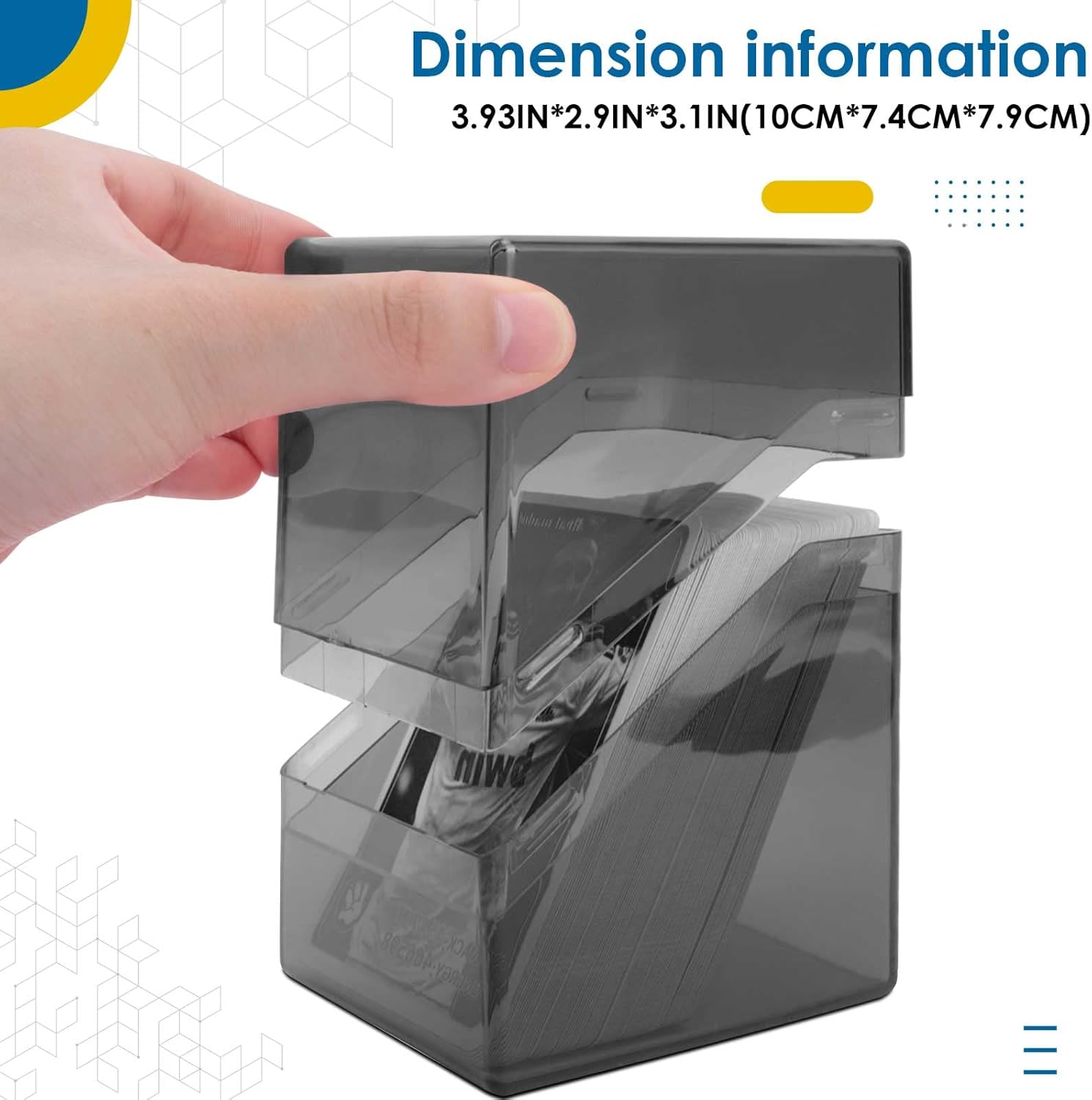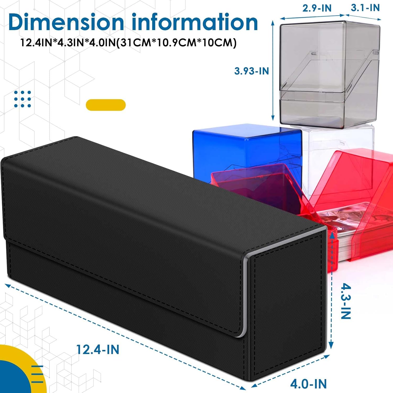- Package includes: one 600+ Card Deck boxes and 4 colors card deck cases. The size of magnetic card holder is 12.6x 4.5x4 inches, and the size of the acrylic card storage box is 2.8 x 3x 4 inches. It's large enough to store 1000+ standard size trading game cards easily.