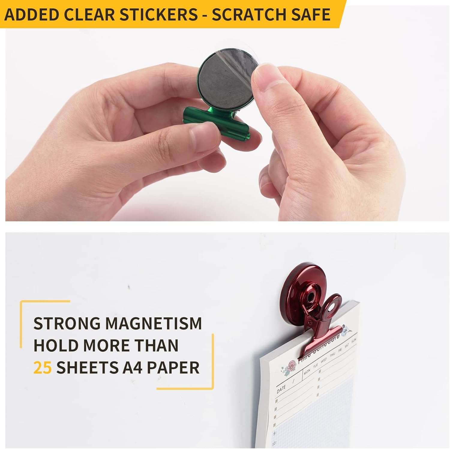 - 【Magnetic Clips Heavy Duty】 The magnetic clips with round strong magnets can hold more than 25 sheets A4 paper together on a metal surface like a dry erase board, refrigerator and will not slide easily over time.