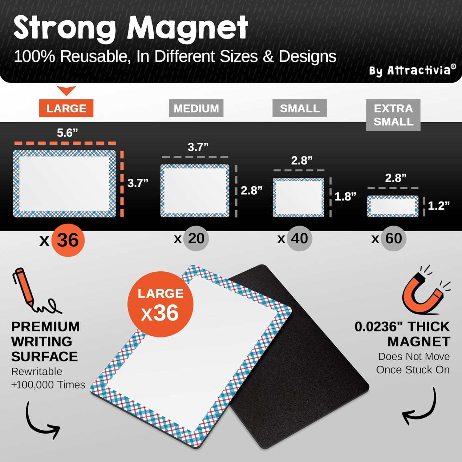 - Instant Organization: Our set of 36 dry erase magnetic labels is perfect for creating writable noticeboards or labeling items at home, in the office, or in a store. These dry erase magnetic labels for dry erase board are also ideal for sorting, identifying, and organizing with ease.