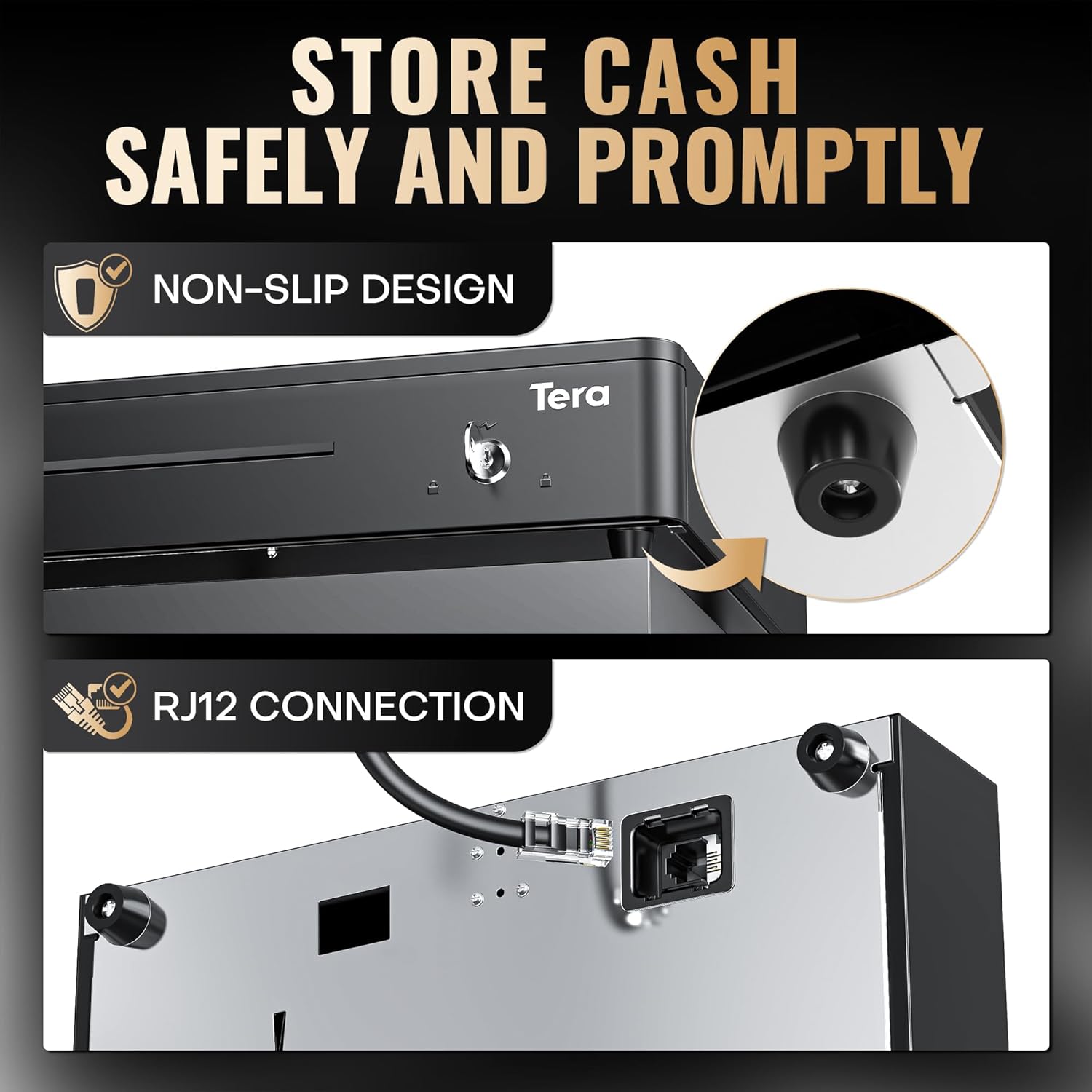 - Auto Open & Round Design: Tera 330R cash drawer features rounded corners for safety. Connect it to a receipt/thermal printer via RJ12 cable (included), then link the printer to your POS for automatic tray operation. Compatible with major printer brands.