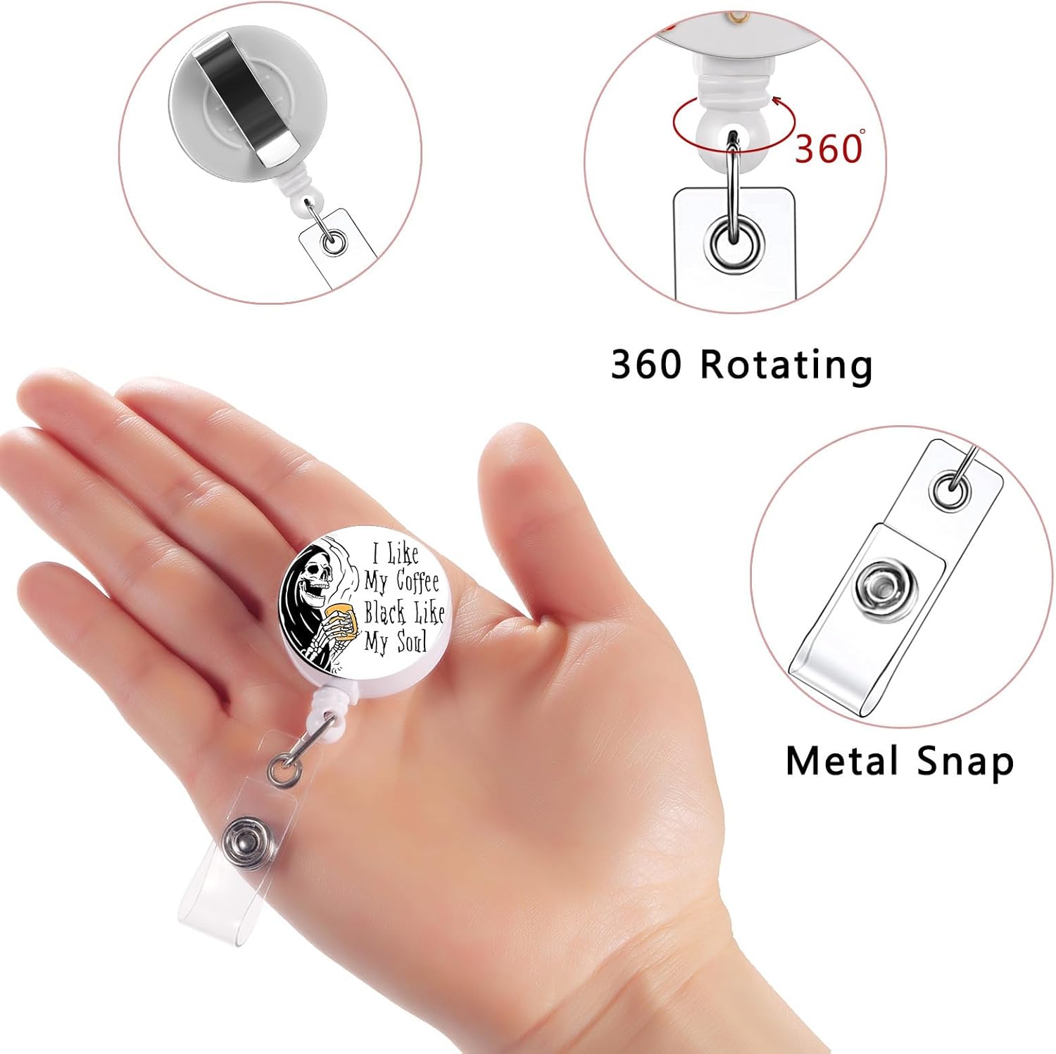 - Retractable Badge Reel Size :Cute badge reel size:3.2cm/1.28".The stretching length of retractable id badge clip:64cm/24.6".
