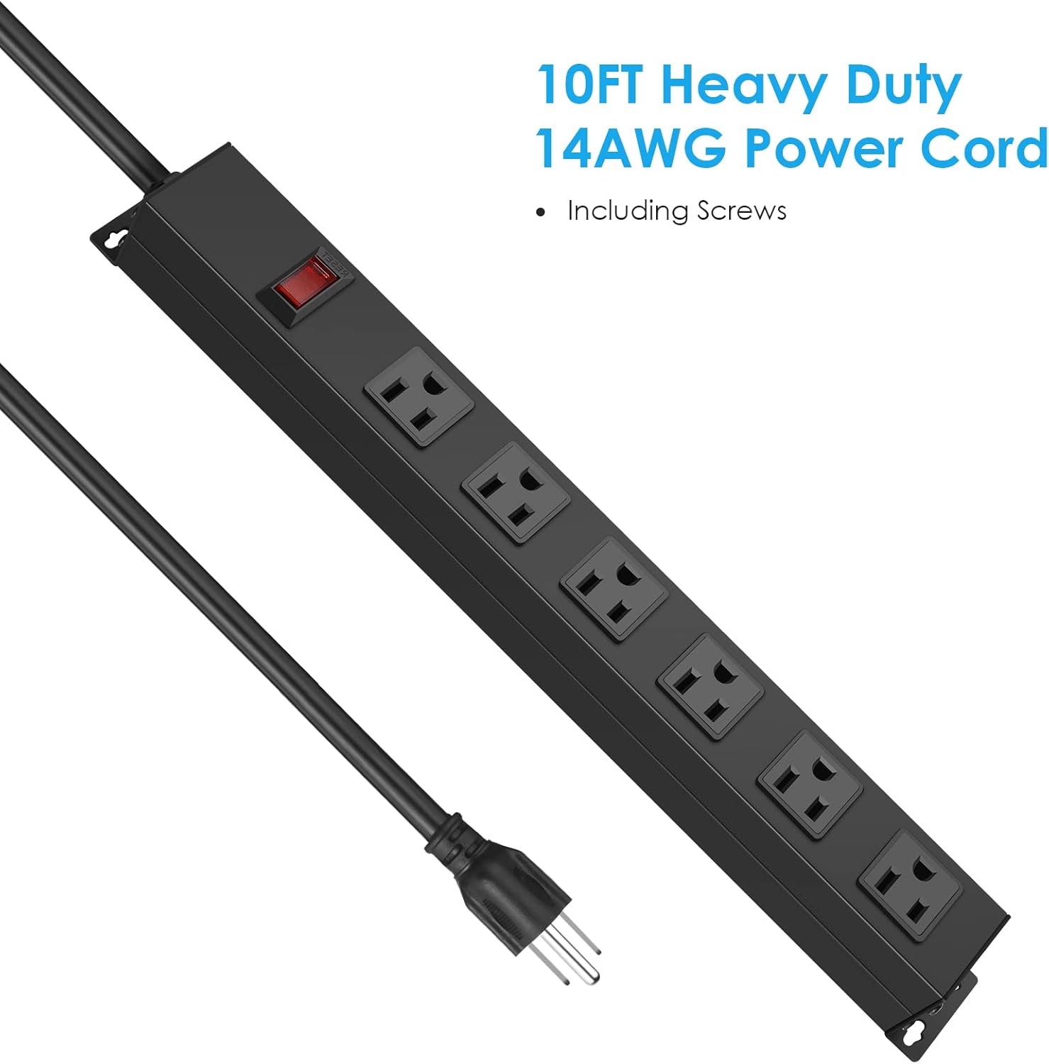 - 6 Outlet Wall Mount Power Strip: Is made of aluminum alloy, excellent workmanship, sturdy and durable. Perfect indoor use for any workshops, enclosed garages, offices, home, workbench, industrial and so on applications. Provide 4 screws, you can mount it where you want to.
