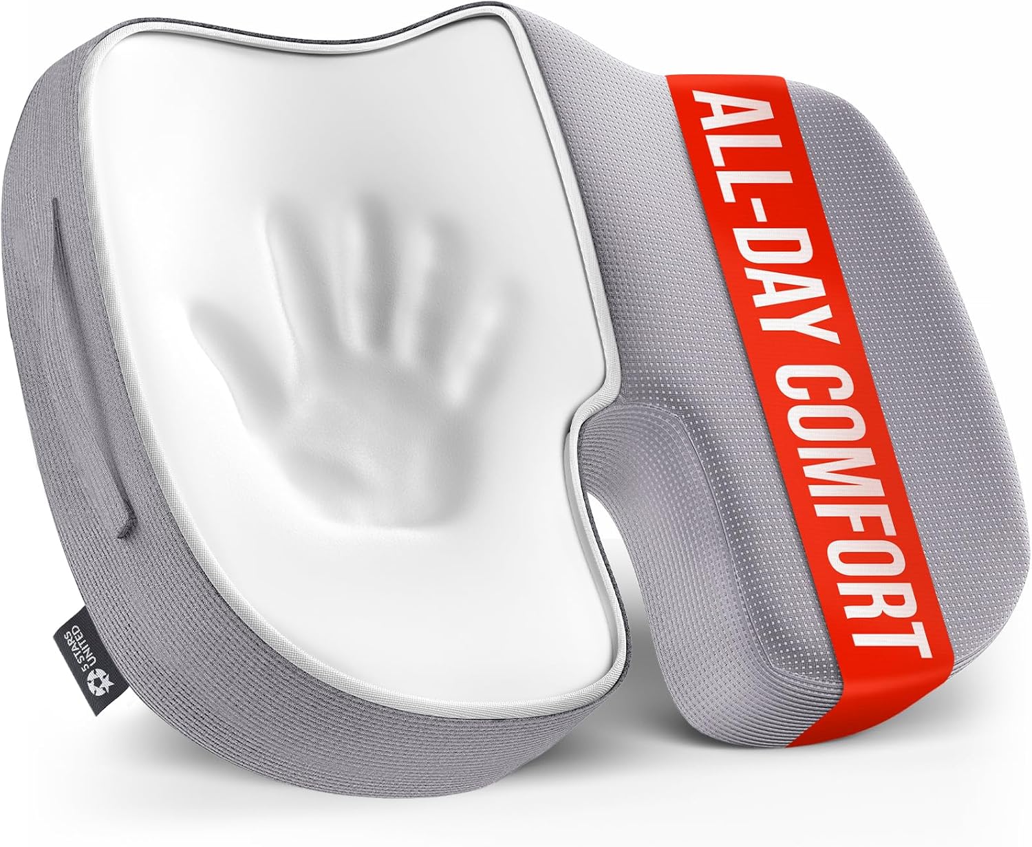 5 STARS UNITED Seat Cushion for Tailbone Pain Relief โ Memory Foam Lifting Pillow for Coccyx, Hip, Hemorrhoid, Sciatica & Post-Surgery Recovery โ Wheelchair, Car, Desk, Gaming & Office Chairs, L Gray