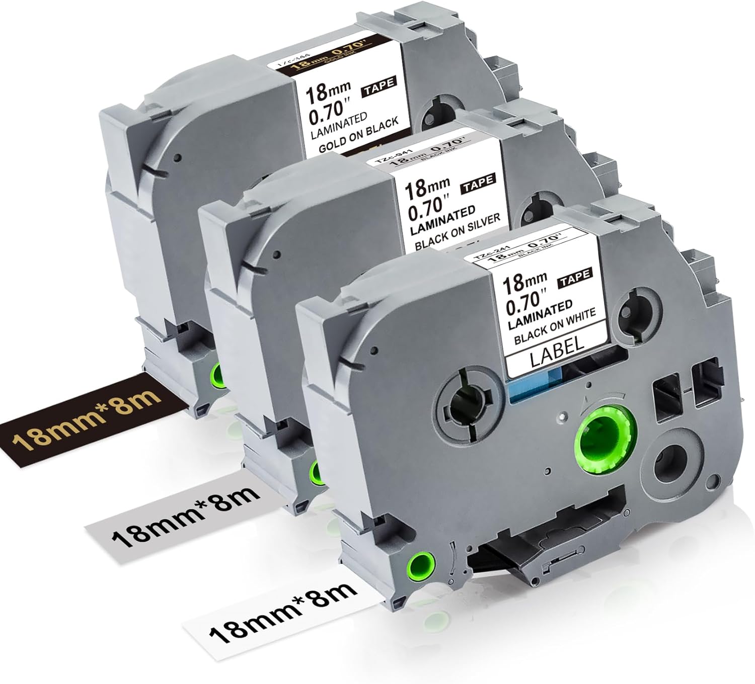 - Item : 3-pack Lonitul 18mm label maker tape compatible with Brother Ptouch label tape 18mm, Tze-241(black on white), Tze-344(gold on black), Tze-941(black on silver), 3/4 Inch x 26.2 Feet (18mm x 8m) of each tape. Feel free to e-mail us if you have questions.