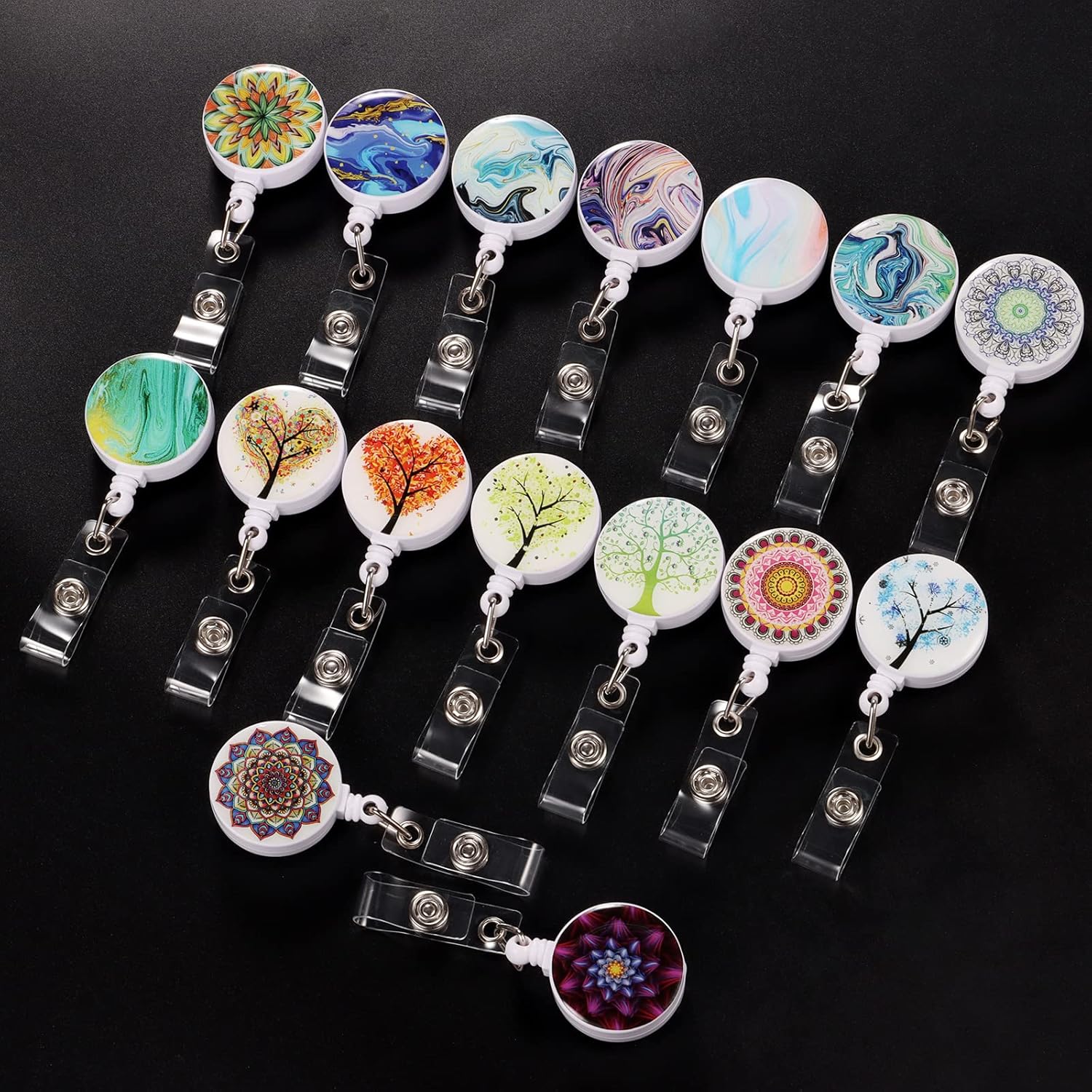 - ¡¾Retractable Lanyards for ID Badges Package¡¿ You will be presented with 16 pack different patterns of retractable id badge holder. Giving you a variety of options to match your outfit.