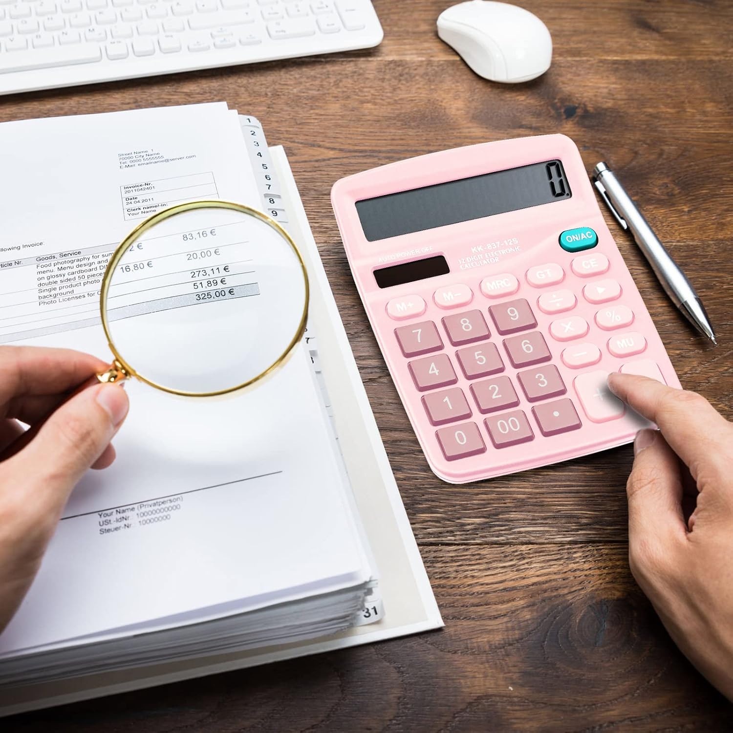 Konohan 8 Pieces 12-Digit Calculator, Solar Basic Desktop Calculator Large Display Electronic Dual Power Handheld for Home Office School(Pink)